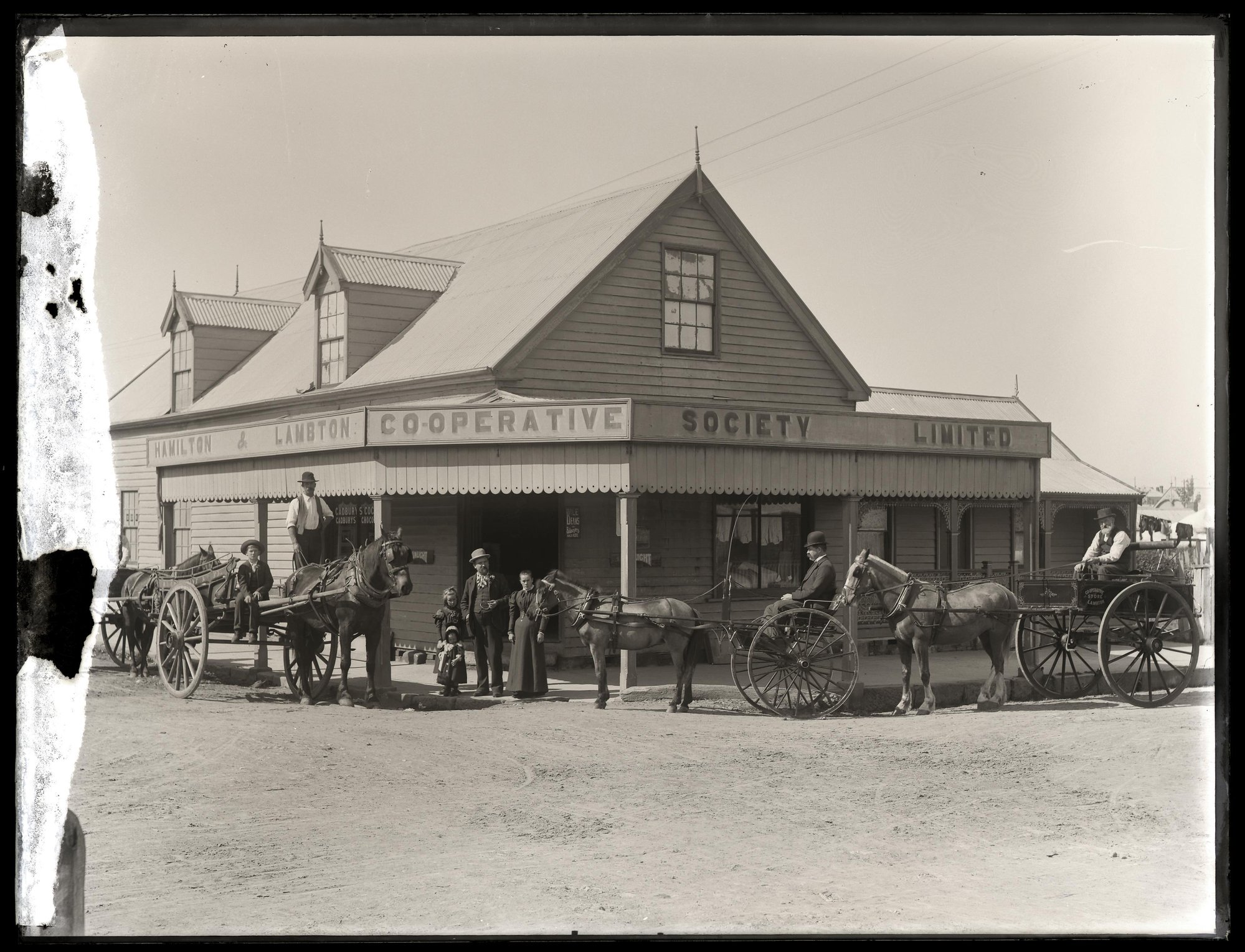 Ralph Snowball, Hamilton and Lambton Co-operative store, Pearson and Grainger Streets, Lambton, NSW, 1 September 1898] ([1 September 1898]), [ASGN0068-B3]. Living Histories, accessed 14/04/2026, https://livinghistories.newcastle.edu.au/nodes/view/46477