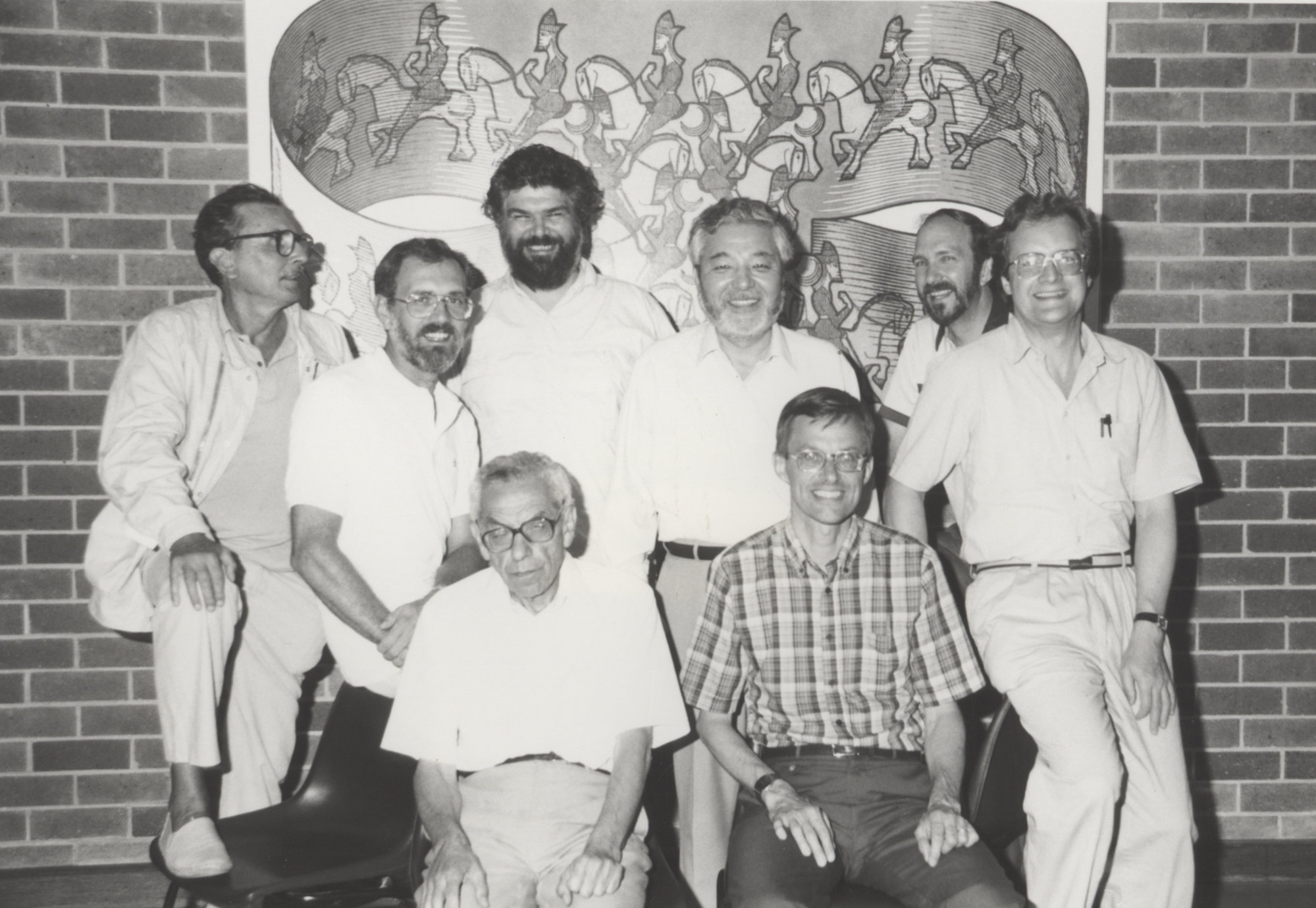 Front row: Professors Paul Erdos and Duane Meeter; middle row: Professors Claude Berge, Keinosuke Fukunaga and Rudolf Lidl; back row: Professors David Matthews, Michael Dale and Dr Eggleton at the University of Newcastle, Australia, [P1766-05]. Living Histories, accessed 04/04/2026, https://livinghistories.newcastle.edu.au/nodes/view/46698