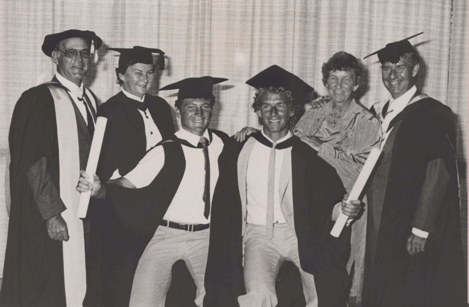 Professor Barry Gordon, Moira Gordon and son, Justin. Christopher, Frances and John Lambert , the University of Newcastle, Australia- 2 May 1987