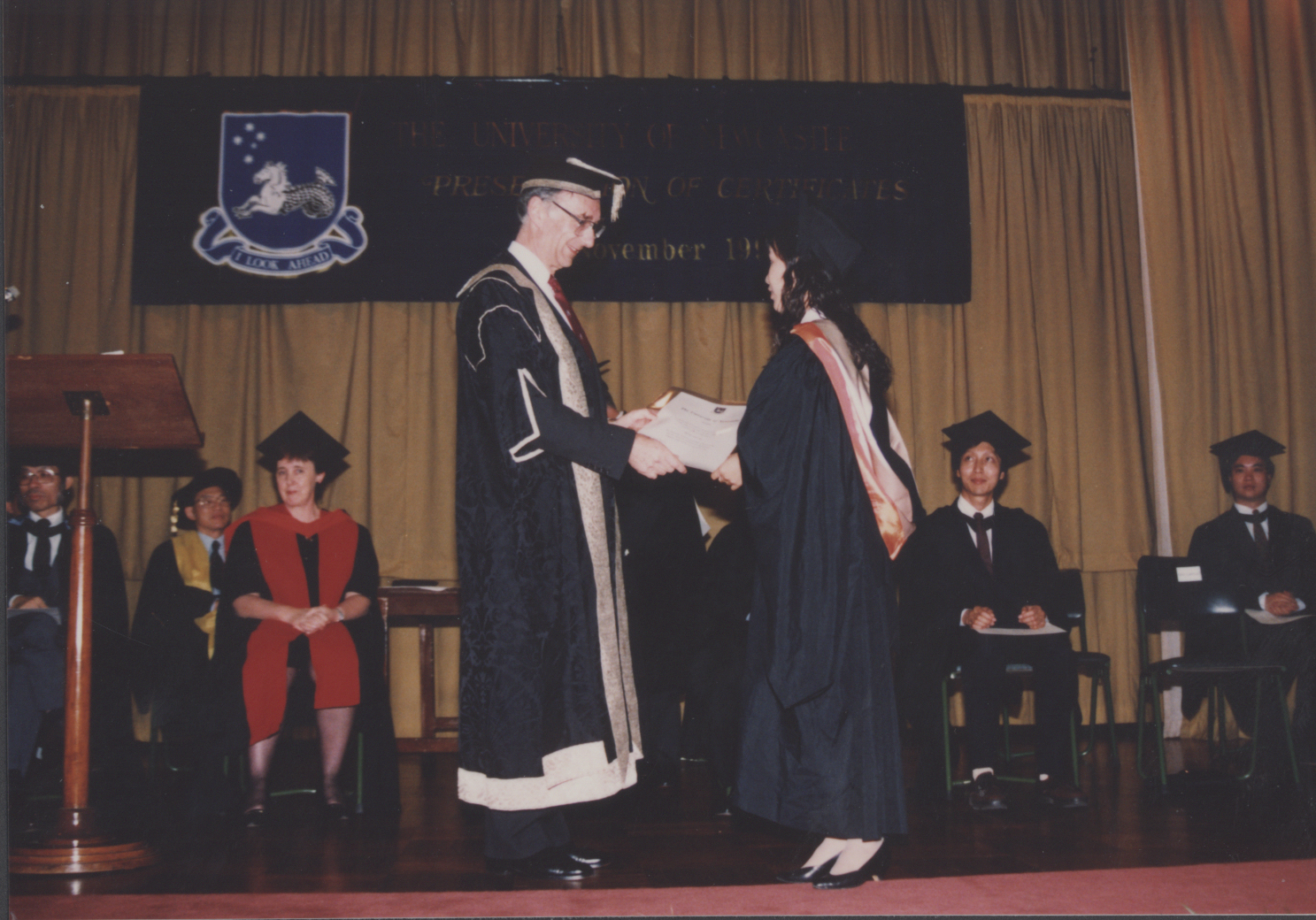 Vice-Chancellor, Professor Keith Morgan presents award to an unidentified graduate at the Korean graduation ceremony, the University of Newcastle - 1 November 1992 (1992), [P1753-04bb]. Living Histories, accessed 30/03/2026, https://livinghistories.newcastle.edu.au/nodes/view/47230