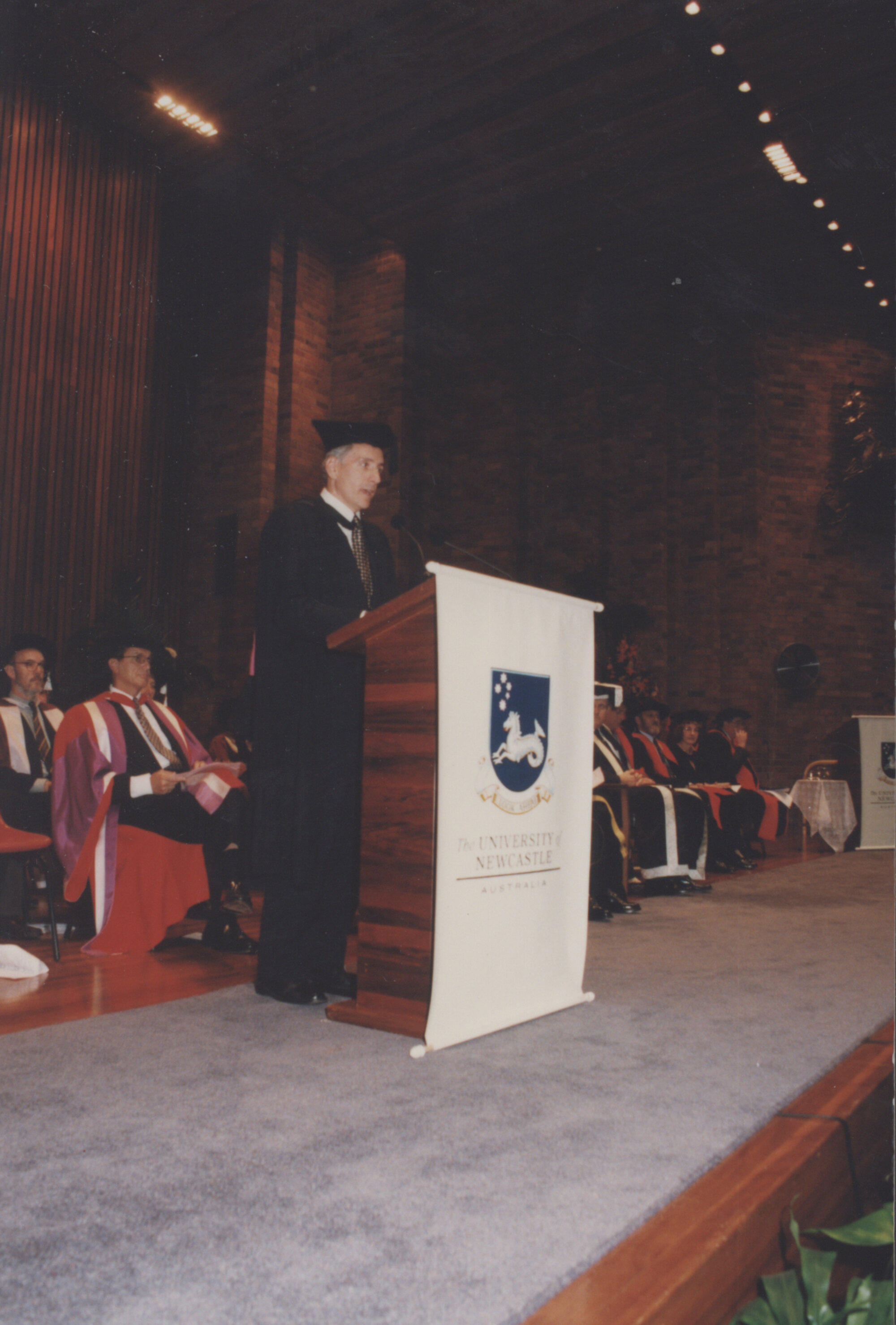An unidentified speaker at the Faculty of Education graduation ceremony, the University of Newcastle, Australia - 9 May 1997, 10.30am (1997-05-09), [P1744-14]. Living Histories, accessed 18/03/2026, https://livinghistories.newcastle.edu.au/nodes/view/47246