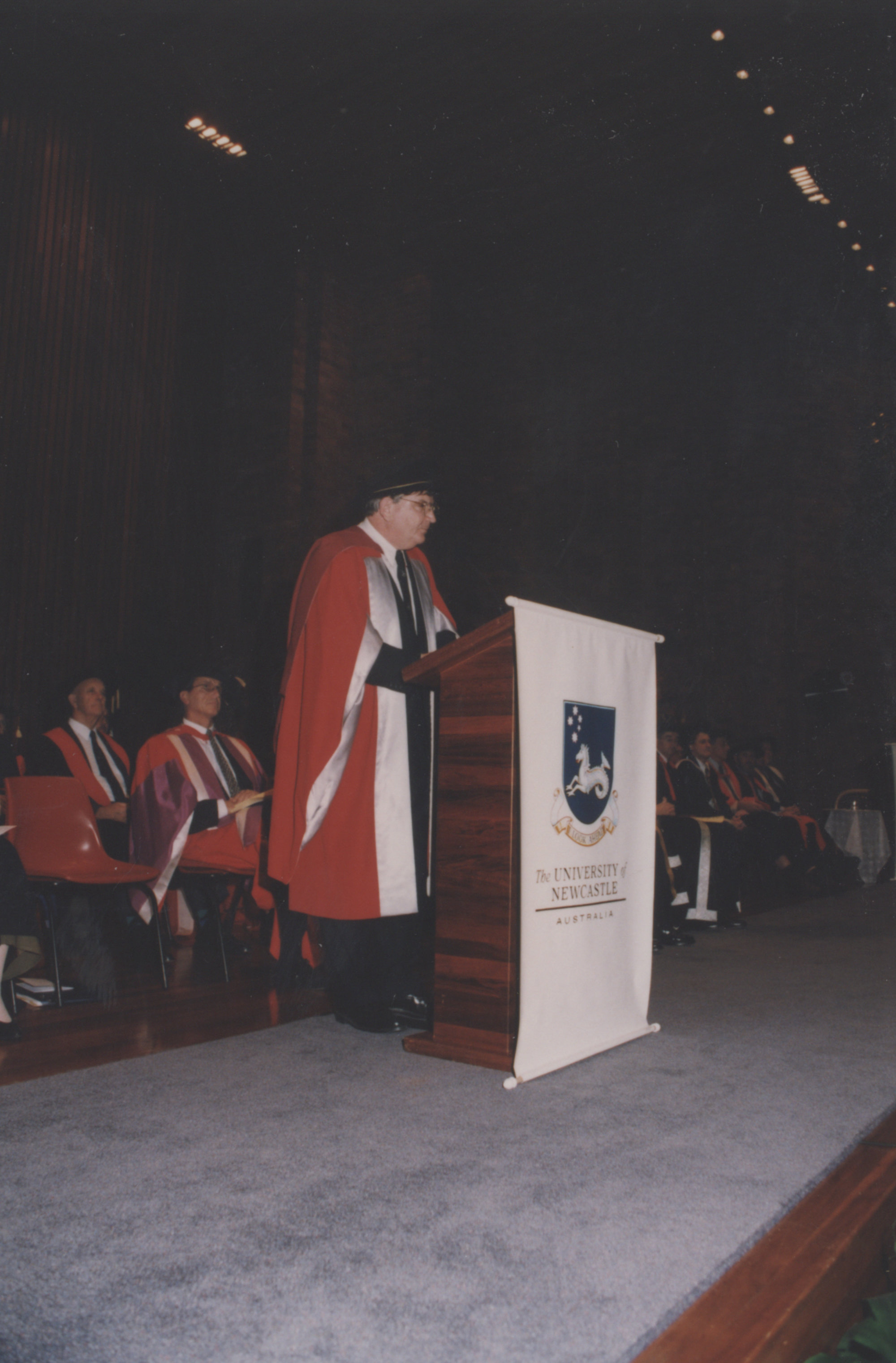 Raoul Mortley speaking at the Faculty of Arts and Social Science graduation ceremony, the University of Newcastle, Australia - 8 May 1997, 2.30pm, [P1750-28]. Living Histories, accessed 30/03/2026, https://livinghistories.newcastle.edu.au/nodes/view/47348