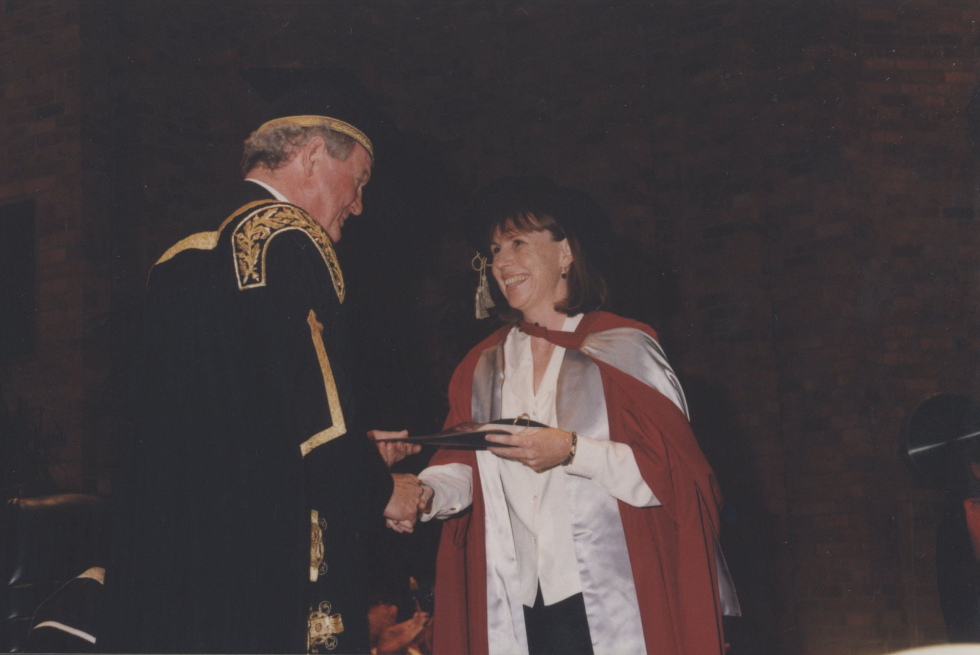 Chancellor Ric Charlton congratulates a graduate at the Faculty of Science / Maths graduation ceremony, the University of Newcastle, Australia - 9 May 1997, 6pm (1997-05-09), [P1743-11]. Living Histories, accessed 04/04/2026, https://livinghistories.newcastle.edu.au/nodes/view/47384