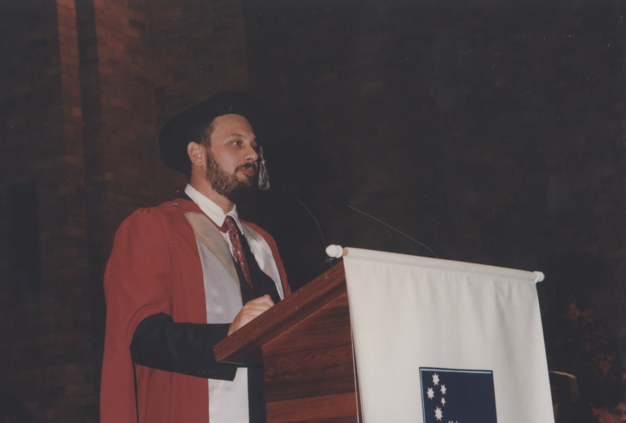 Tim Flannery at the Faculty of Science / Maths graduation ceremony, the University of Newcastle, Australia - 9 May 1997, 6pm (1997-05-09), [P1743-10]. Living Histories, accessed 04/04/2026, https://livinghistories.newcastle.edu.au/nodes/view/47385