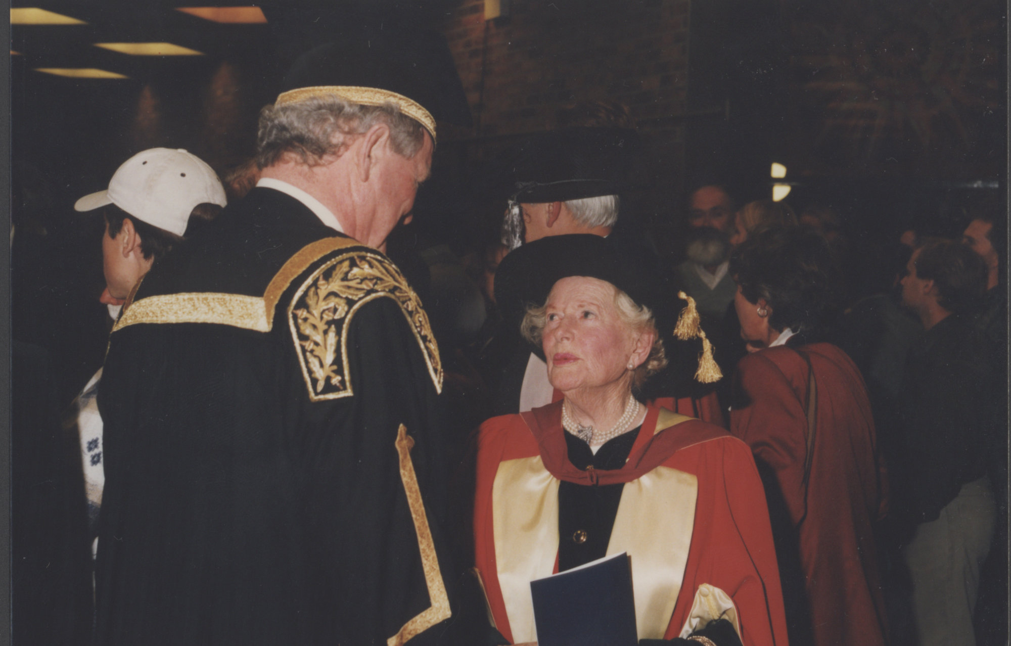 Chancellor Ric Charlton and unidentified graduate at the Faculty of Science & Mathematics graduation ceremony, the University of Newcastle, Australia - 9 May 1997, 6pm (1997-05-09), [P1743-02]. Living Histories, accessed 04/04/2026, https://livinghistories.newcastle.edu.au/nodes/view/47393