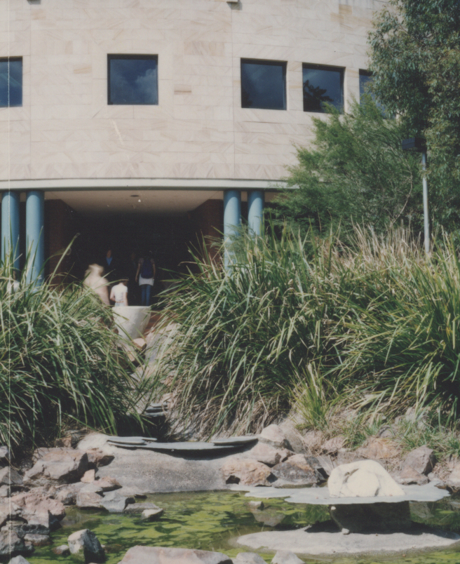 Students outside the Chancellery Building, the University of Newcastle, Australia - 1990s ([1990s]), [P1735g]. Living Histories, accessed 18/03/2026, https://livinghistories.newcastle.edu.au/nodes/view/47794