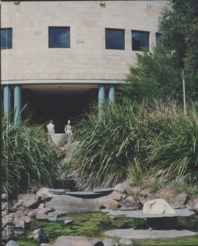Students relax outside the Chancellery Building, the University of Newcastle, Australia - 1990s ([1990s]), [P1734f]. Living Histories, accessed 18/03/2026, https://livinghistories.newcastle.edu.au/nodes/view/47795