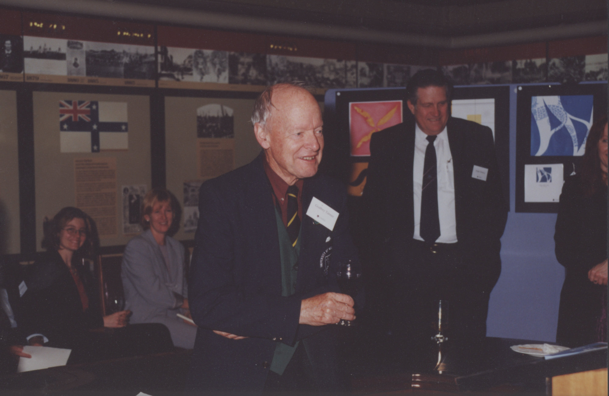 Official University Function, attended by the Vice-Chancellor Roger Holmes (background right) with Godfrey Tanner (centre) pictured on left, Parliament House, NSW, Australia - c.1999 (1999), [P1812]. Living Histories, accessed 04/04/2026, https://livinghistories.newcastle.edu.au/nodes/view/47855