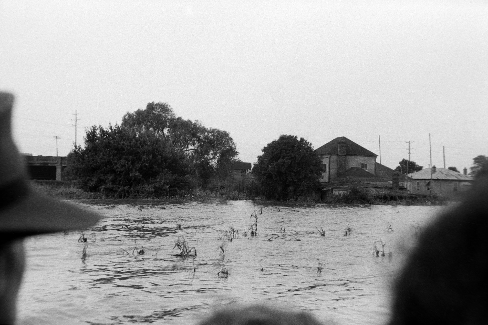 Lucey, Jim, Flood waters behind houses during the Maitland Flood, 1955: Lucey Collection (1955), [Film06-06]. Living Histories, accessed 01/04/2026, https://livinghistories.newcastle.edu.au/nodes/view/48285