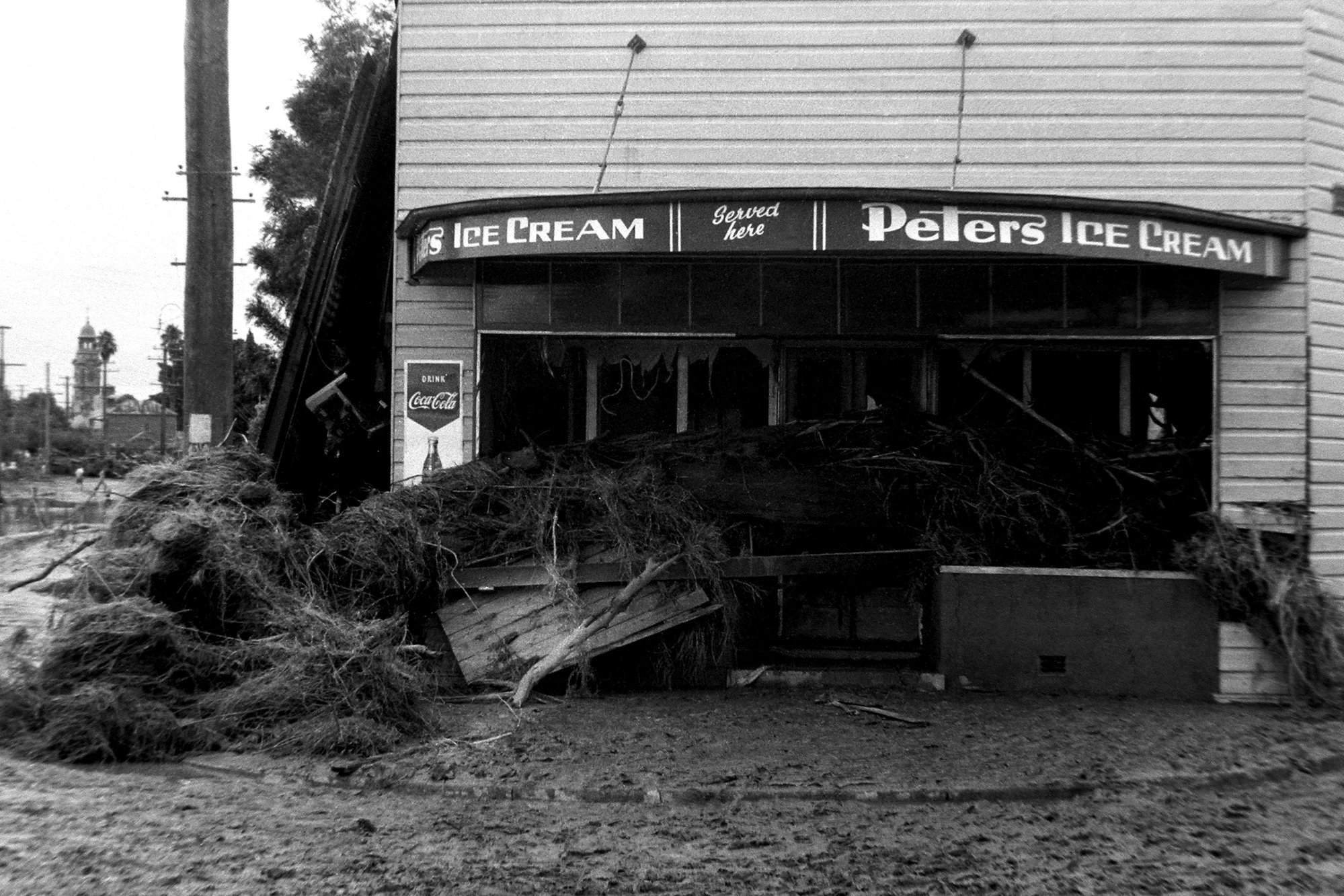 Maitland Flood damage outside a milk bar, 1955: Lucey Collection