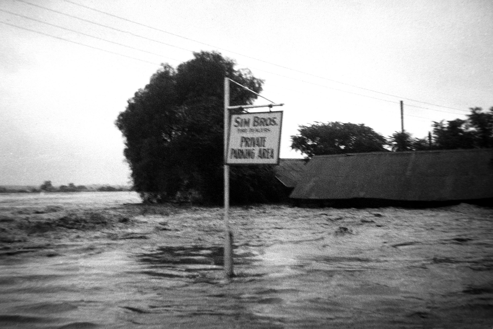 Lucey, Jim, Sim Bros private parking area under flood waters during the Maitland Flood, 1955: Lucey Collection (1955), [Film02-16]. Living Histories, accessed 01/04/2026, https://livinghistories.newcastle.edu.au/nodes/view/48395