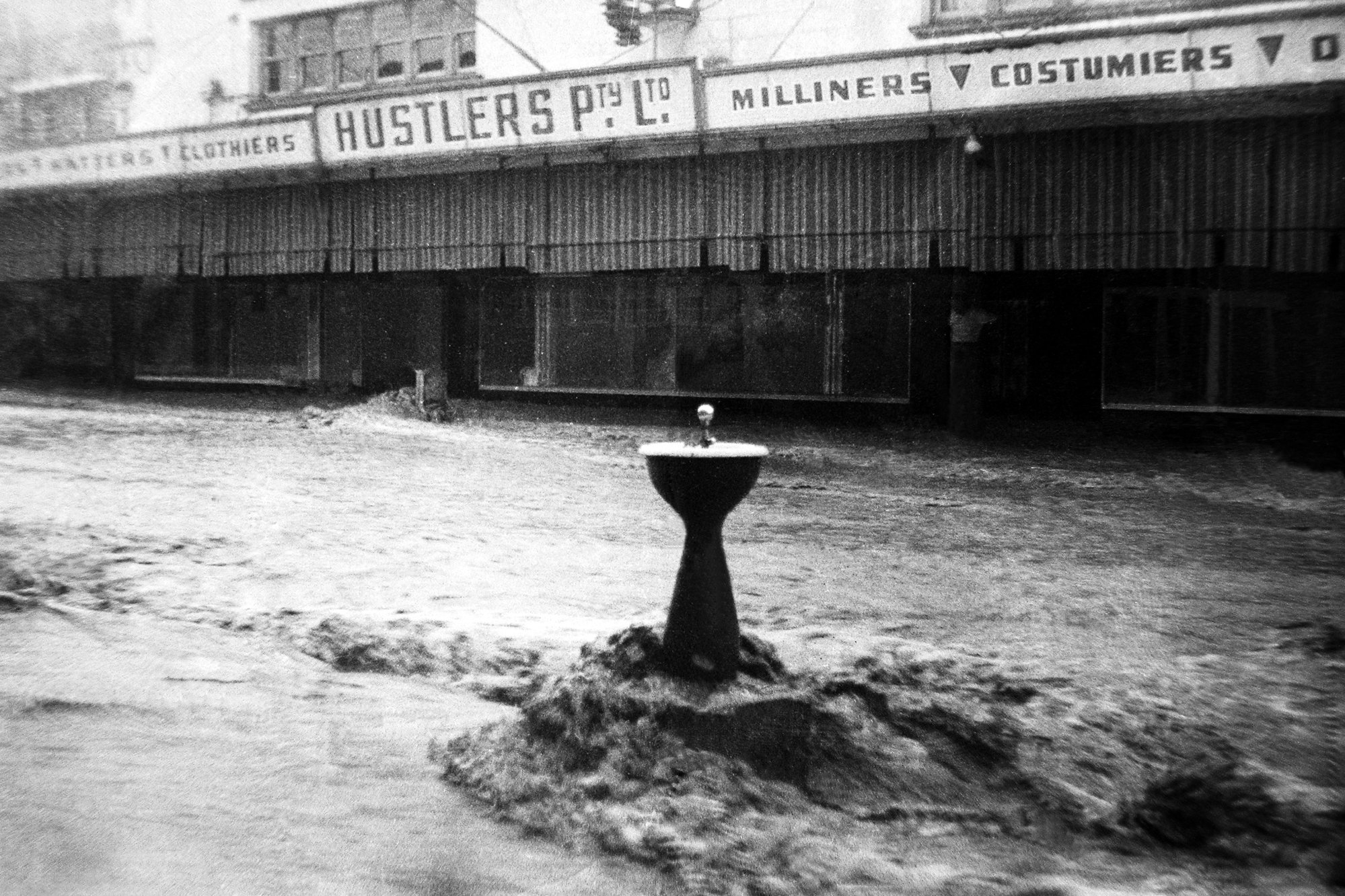 Floodwaters outside Hustlers Pty Ltd during the Maitland Flood, 1955: Lucey Collection