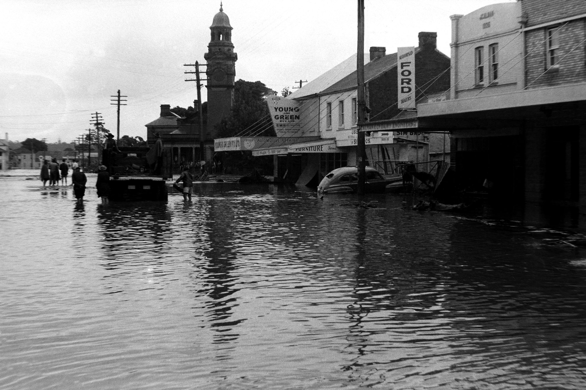 Flooded street during the Maitland Flood, 1955: Lucey Collection