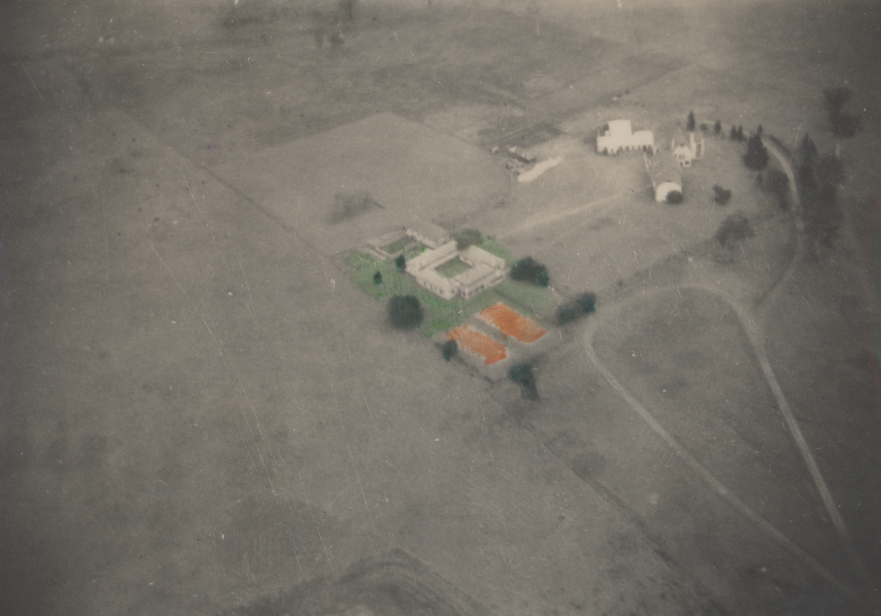 Morpeth House, St John's College - Aerial photograph of Morpeth House's East wing, July 1954 (1954), [A8338(ii)_7]. Living Histories, accessed 17/04/2026, https://livinghistories.newcastle.edu.au/nodes/view/49063