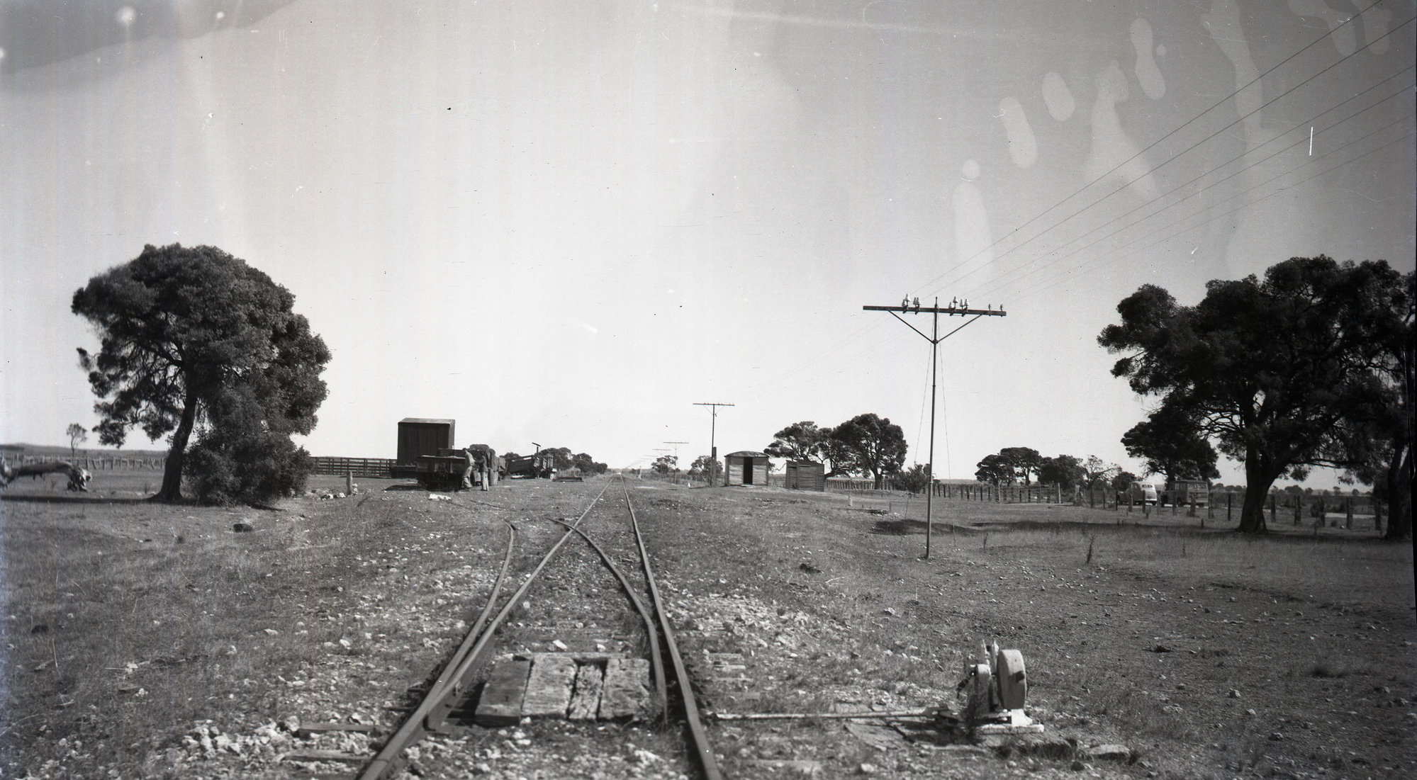 SAR, Siding on Naracoorte-Kingston Line, [1950] ([1950]), [ARHSBox015_0428]. Living Histories, accessed 16/04/2026, https://livinghistories.newcastle.edu.au/nodes/view/4950