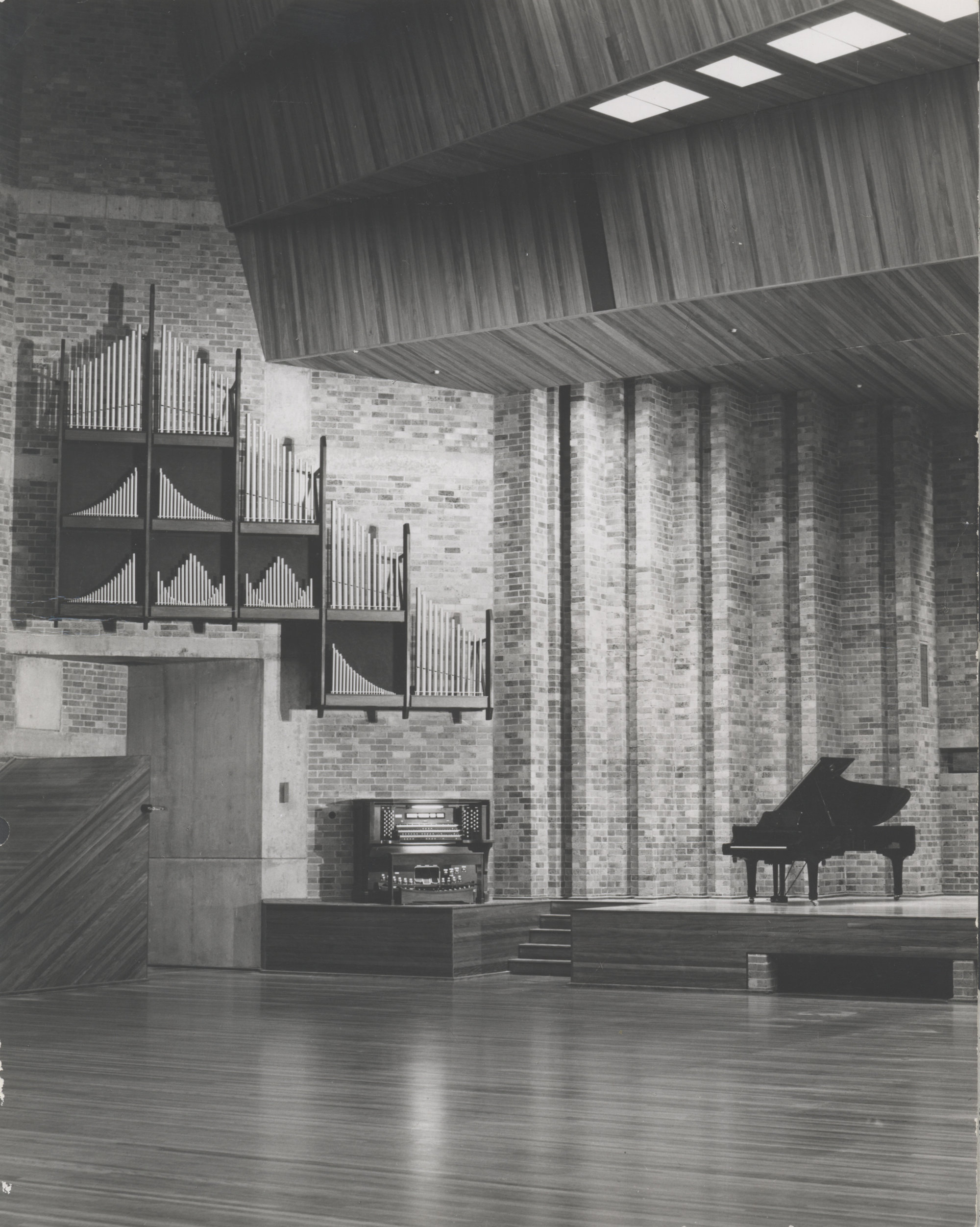UON Photographer, Organ and grand piano in the Great Hall, the University of Newcastle, Australia, [P878-33]. Living Histories, accessed 01/05/2026, https://livinghistories.newcastle.edu.au/nodes/view/49691