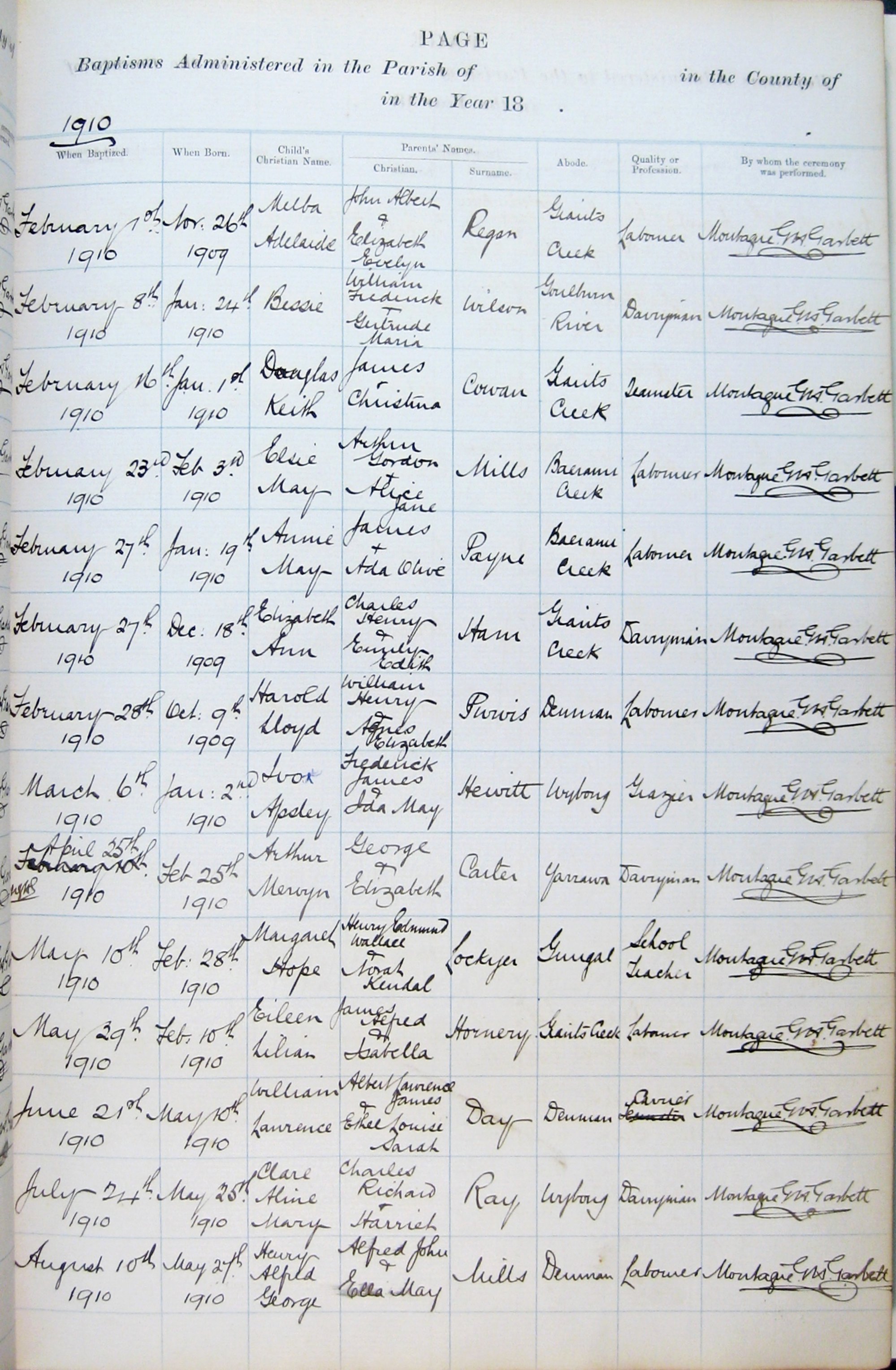 Baptisms Page 66. Jan 1910 to Aug 1910