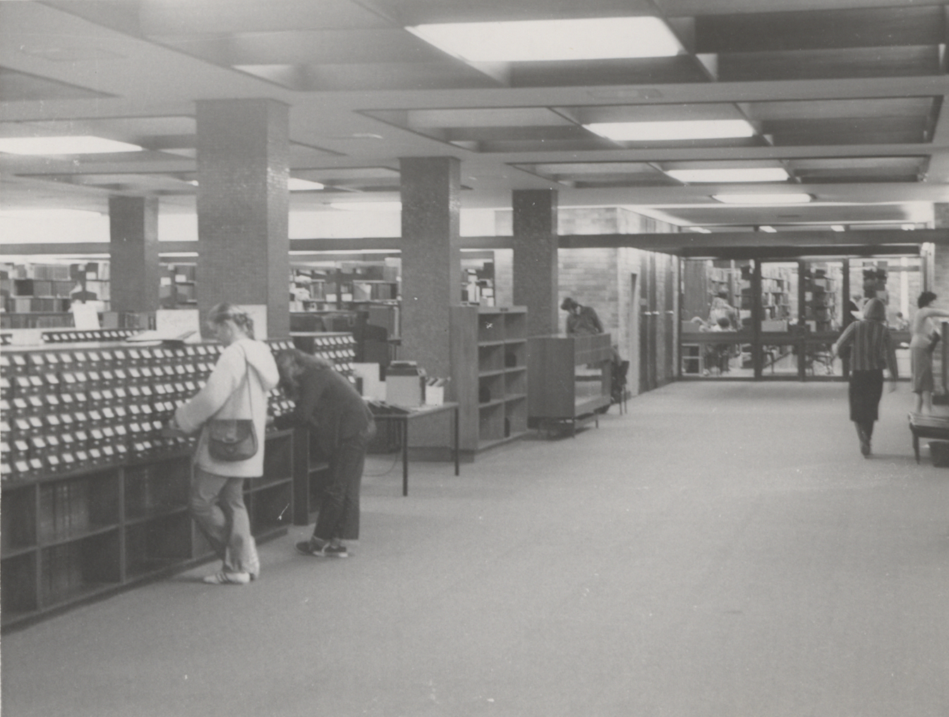 Auchmuty Library interior, the University of Newcastle, Australia, [P850B-91a]. Living Histories, accessed 17/04/2026, https://livinghistories.newcastle.edu.au/nodes/view/50013