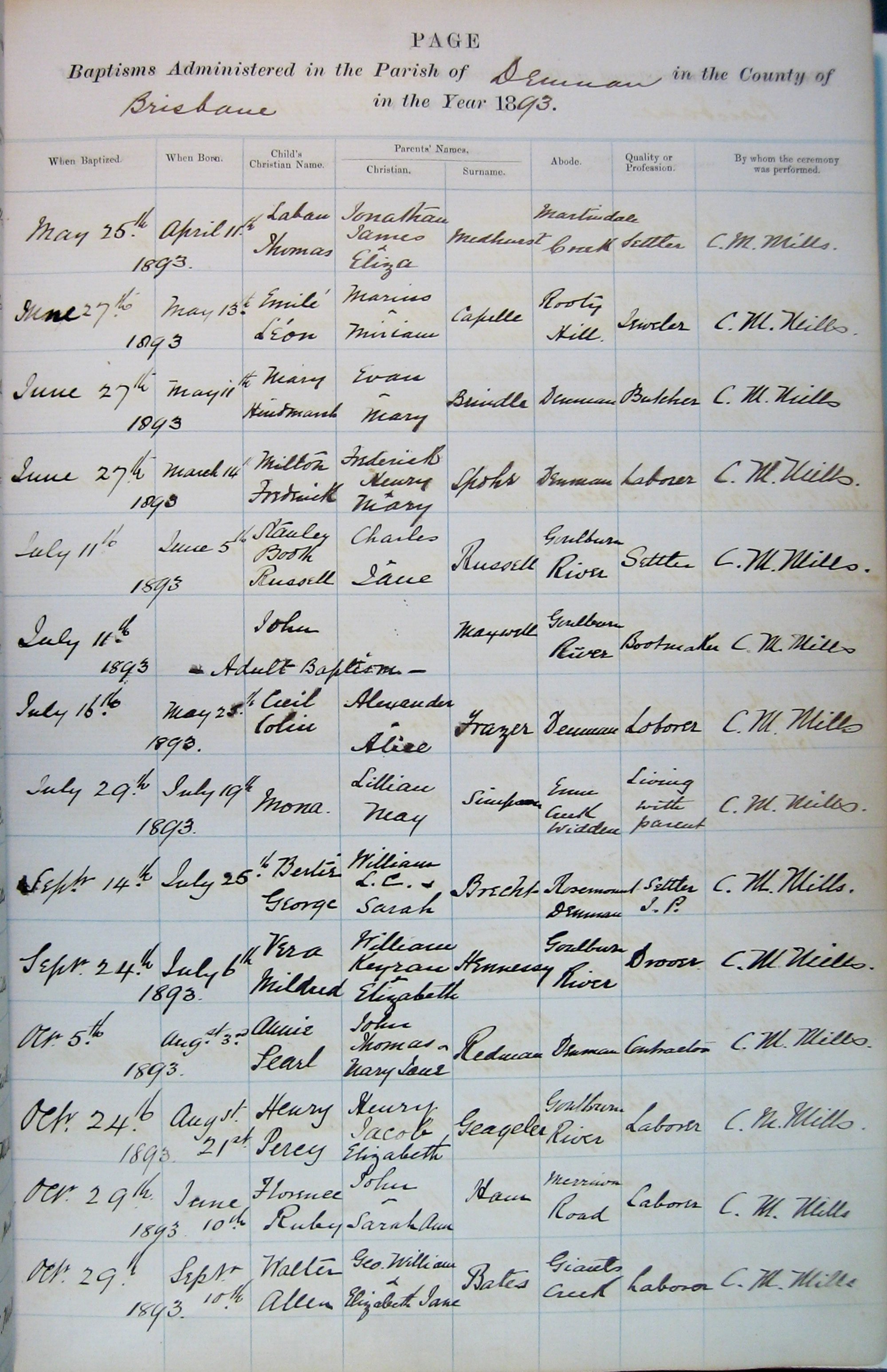 Baptisms Page 36. May 1893 to Oct 1893