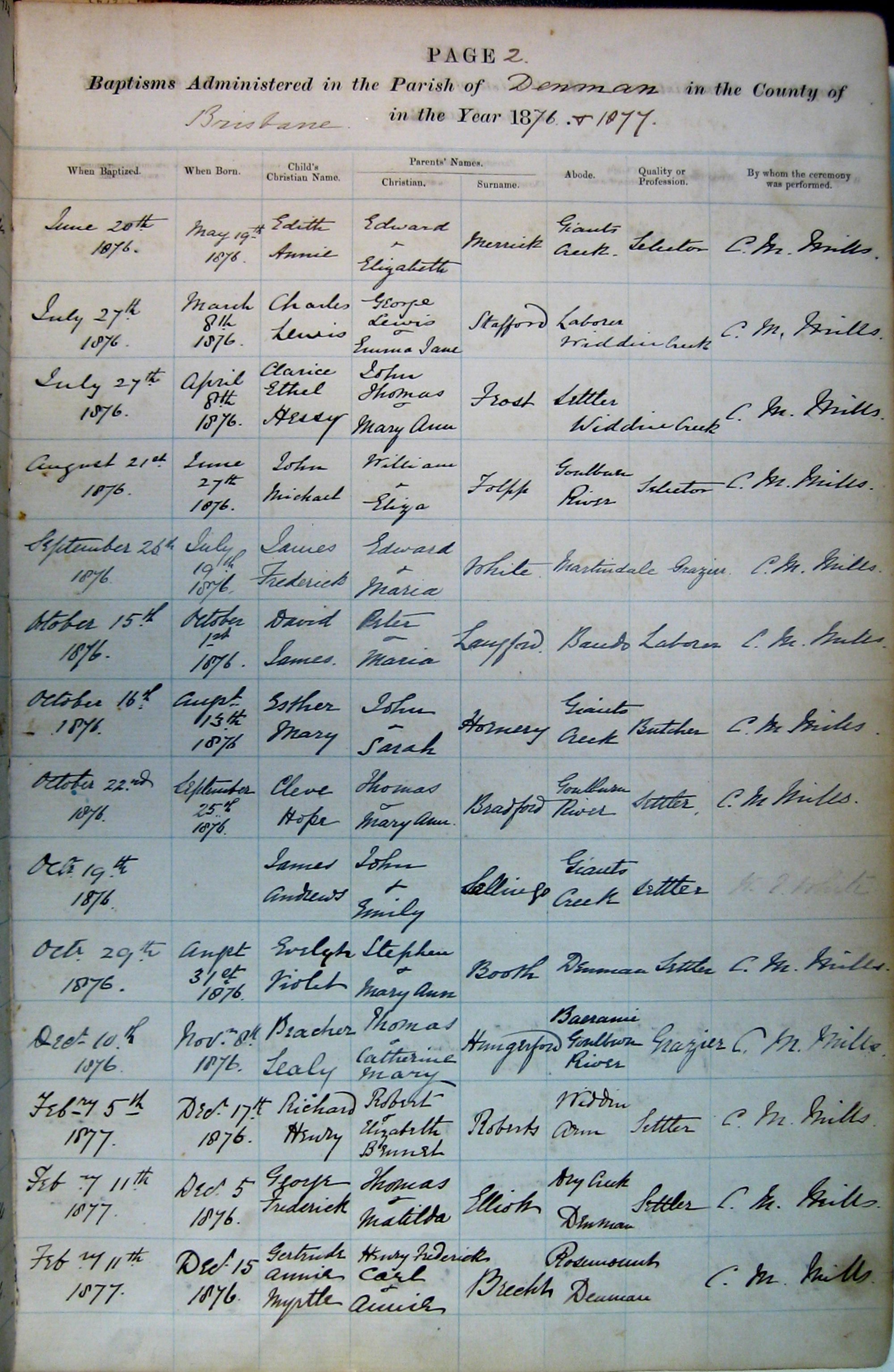 Baptisms Page 2. June 1876 to Feb 1877