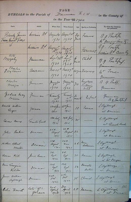 Burials Page 22. Aug 1920 to April 1923