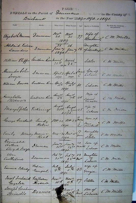 Burials Page 6. Dec 1889 to Nov 1891