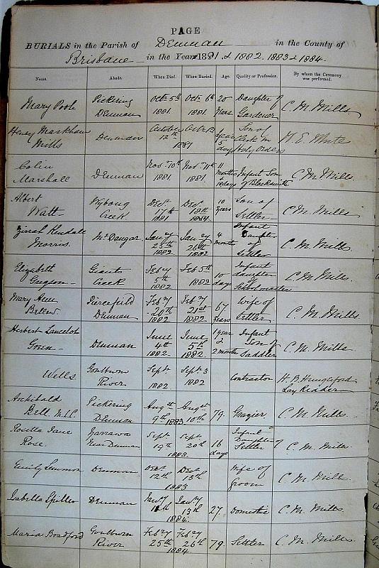 Burials Page 3. Oct 1881 to Feb 1884
