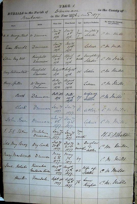 Burials Page 1. Jan 1876 to Sept 1877