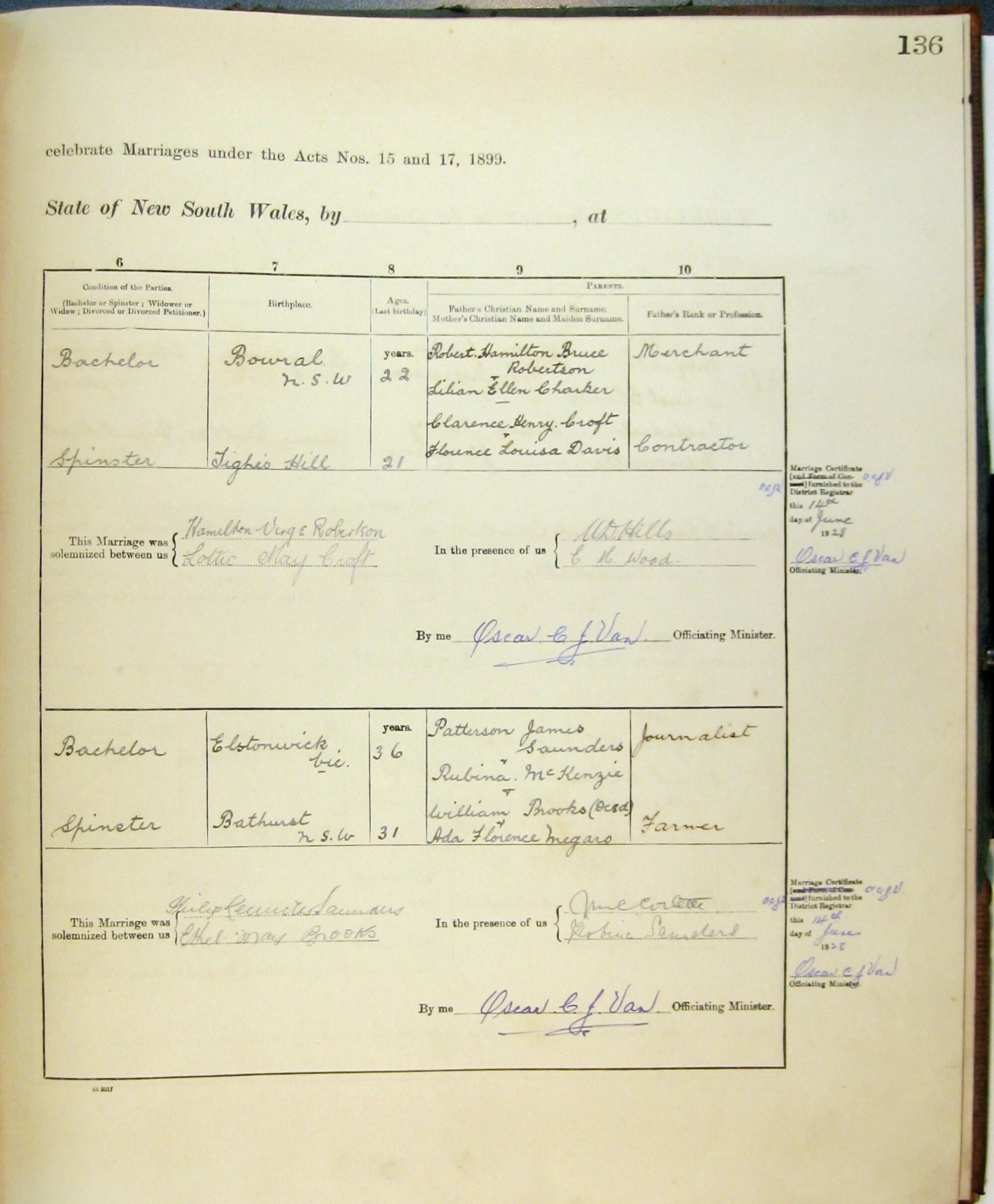Marriages Numbers 268a and 269a, Page 136a. 1928. Living Histories, accessed 17/04/2026, https://livinghistories.newcastle.edu.au/nodes/view/50462