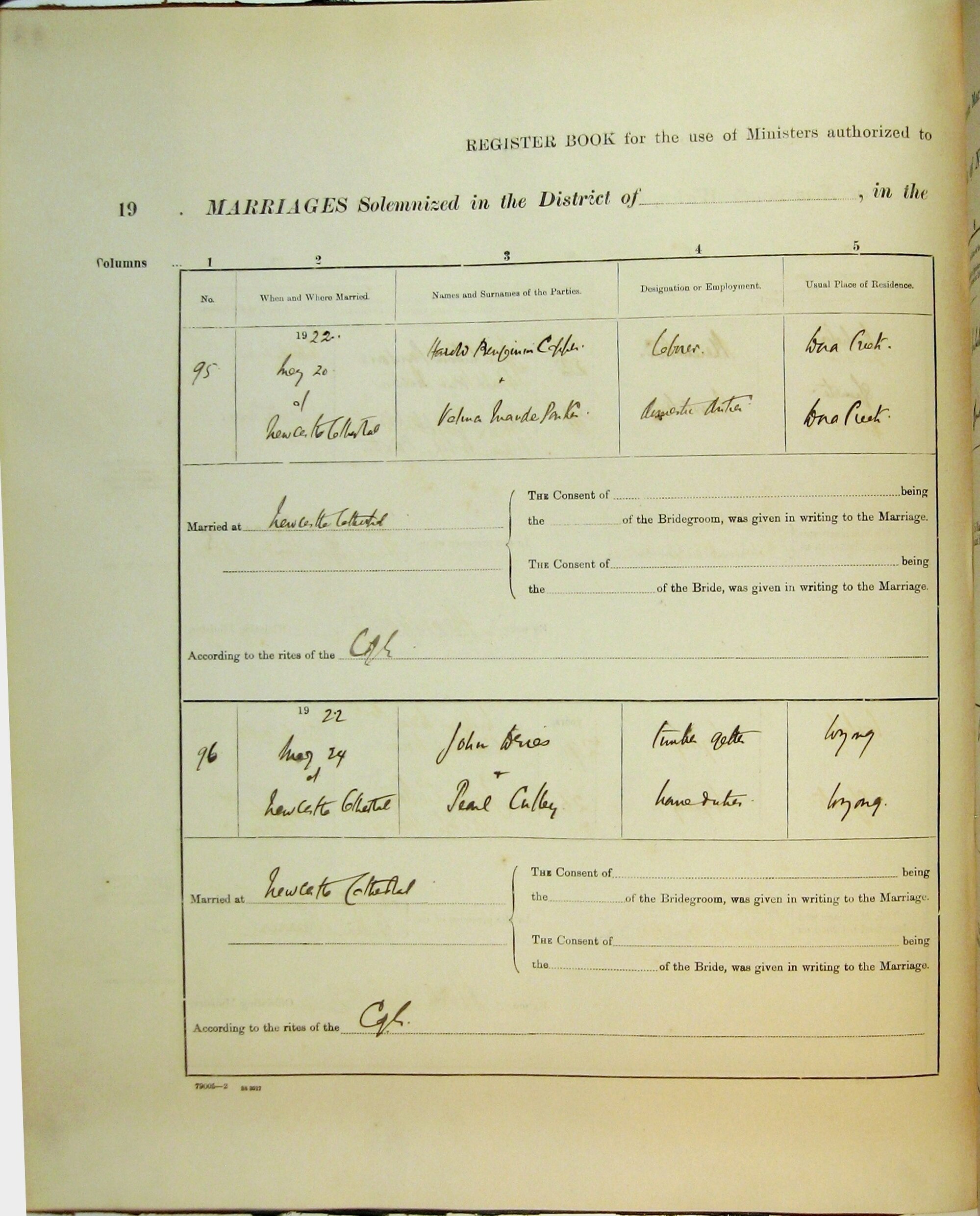 Marriages Numbers 95 and 96, Page 48. 1922