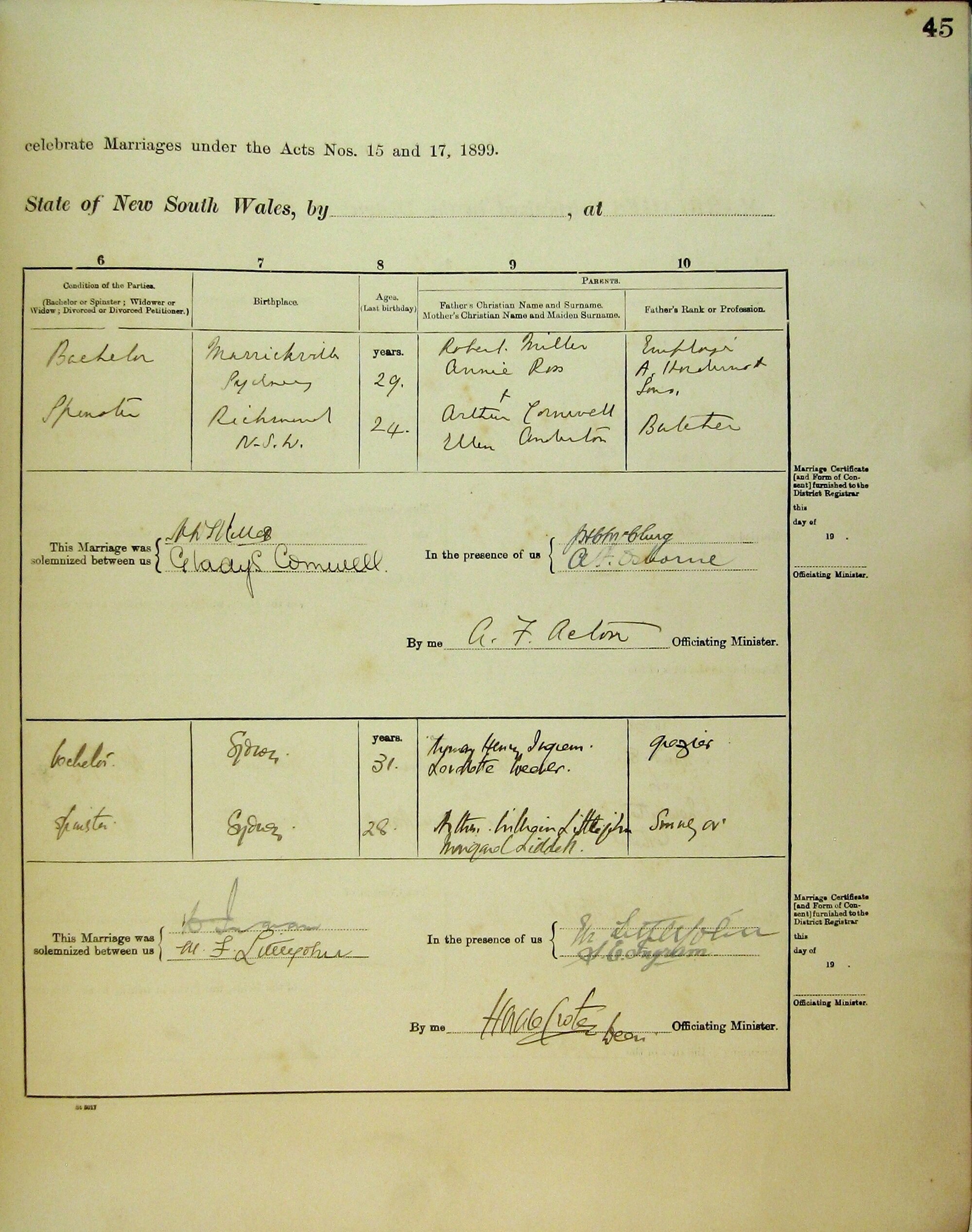 Marriages Numbers 89a and 90a, Page 45a. 1922. Living Histories, accessed 29/04/2026, https://livinghistories.newcastle.edu.au/nodes/view/50642