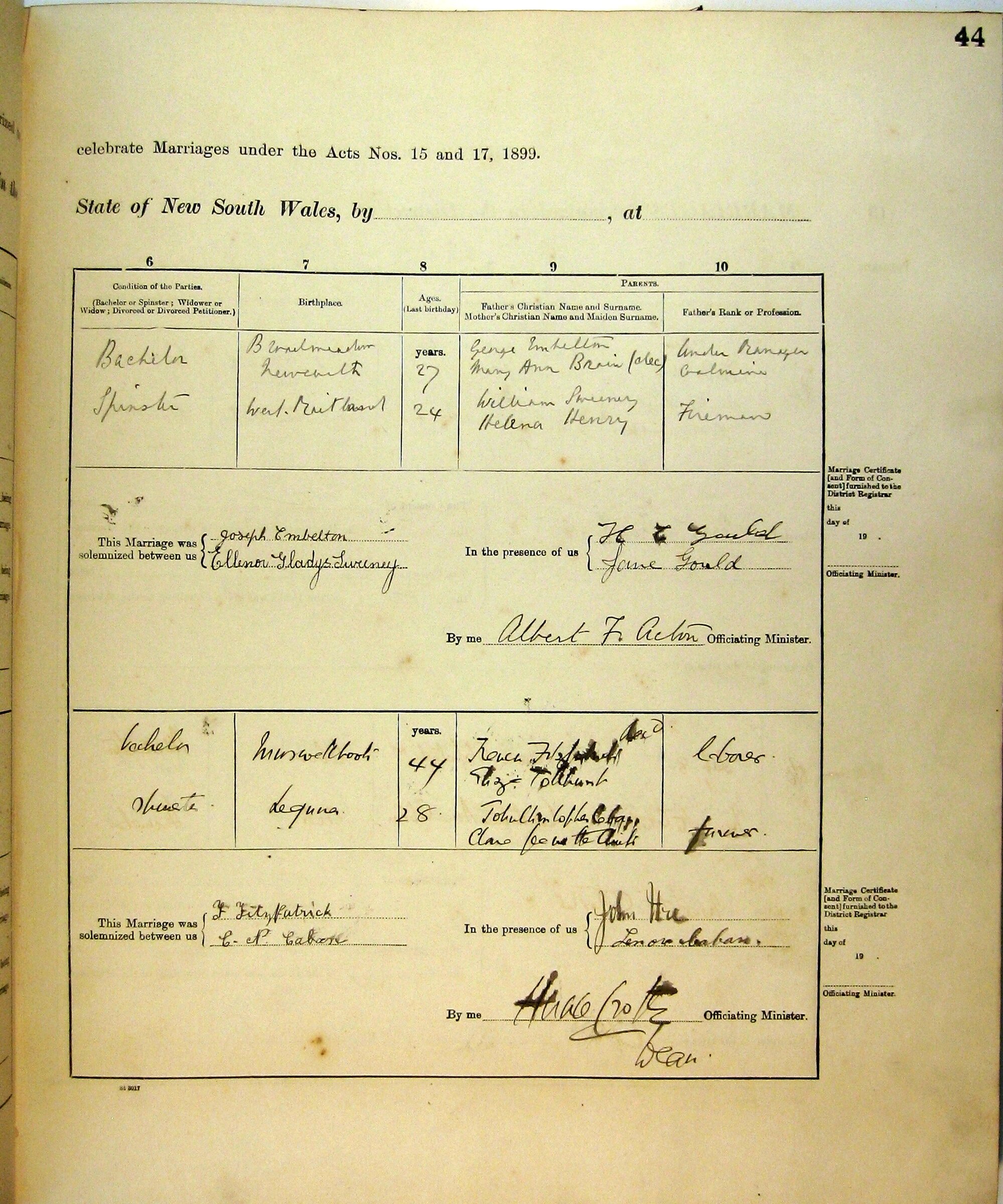 Marriages Numbers 87a and 88a, Page 44a. 1922. Living Histories, accessed 29/04/2026, https://livinghistories.newcastle.edu.au/nodes/view/50644