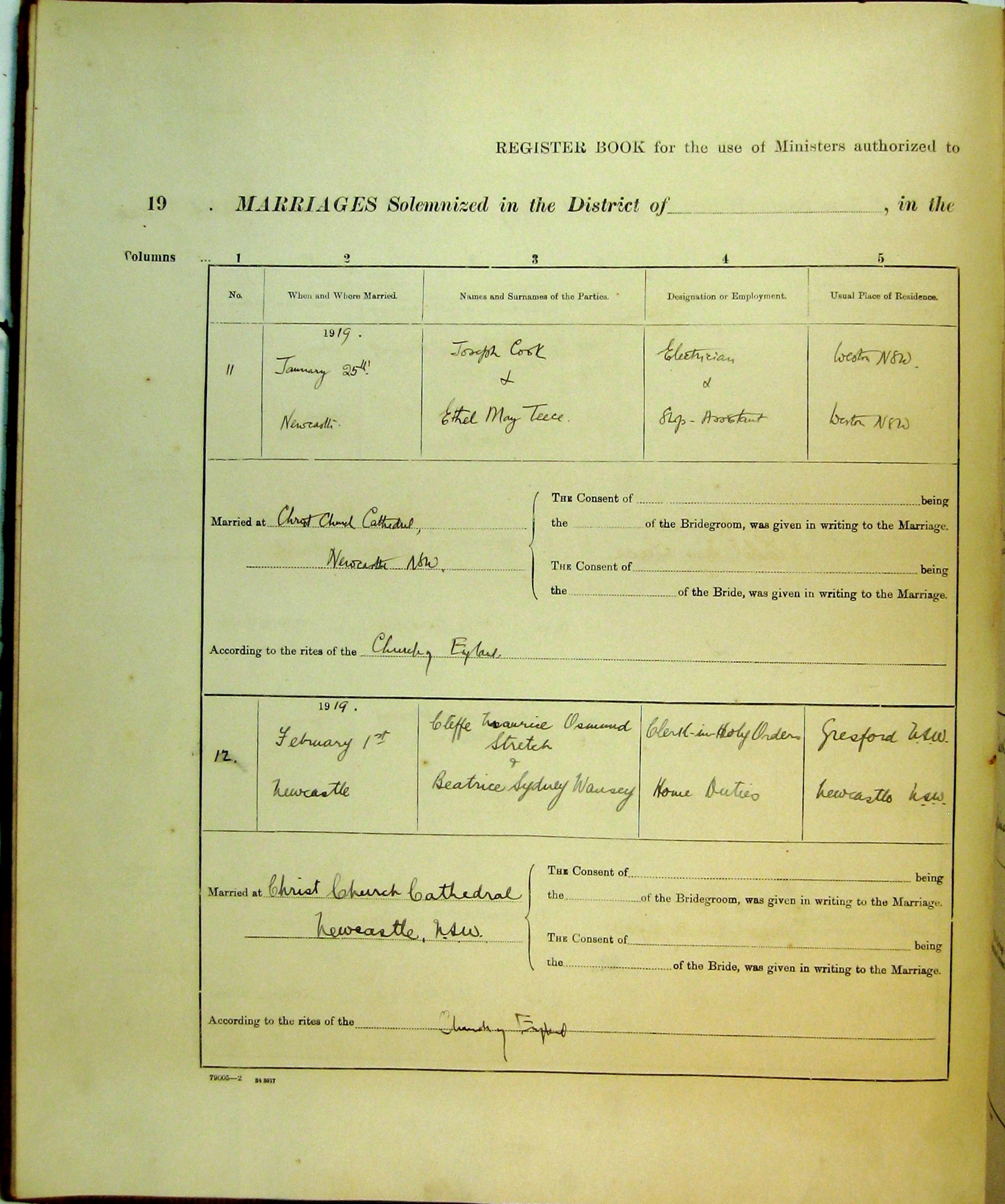 Marriages Numbers 11 and 12, Page 6. 1919