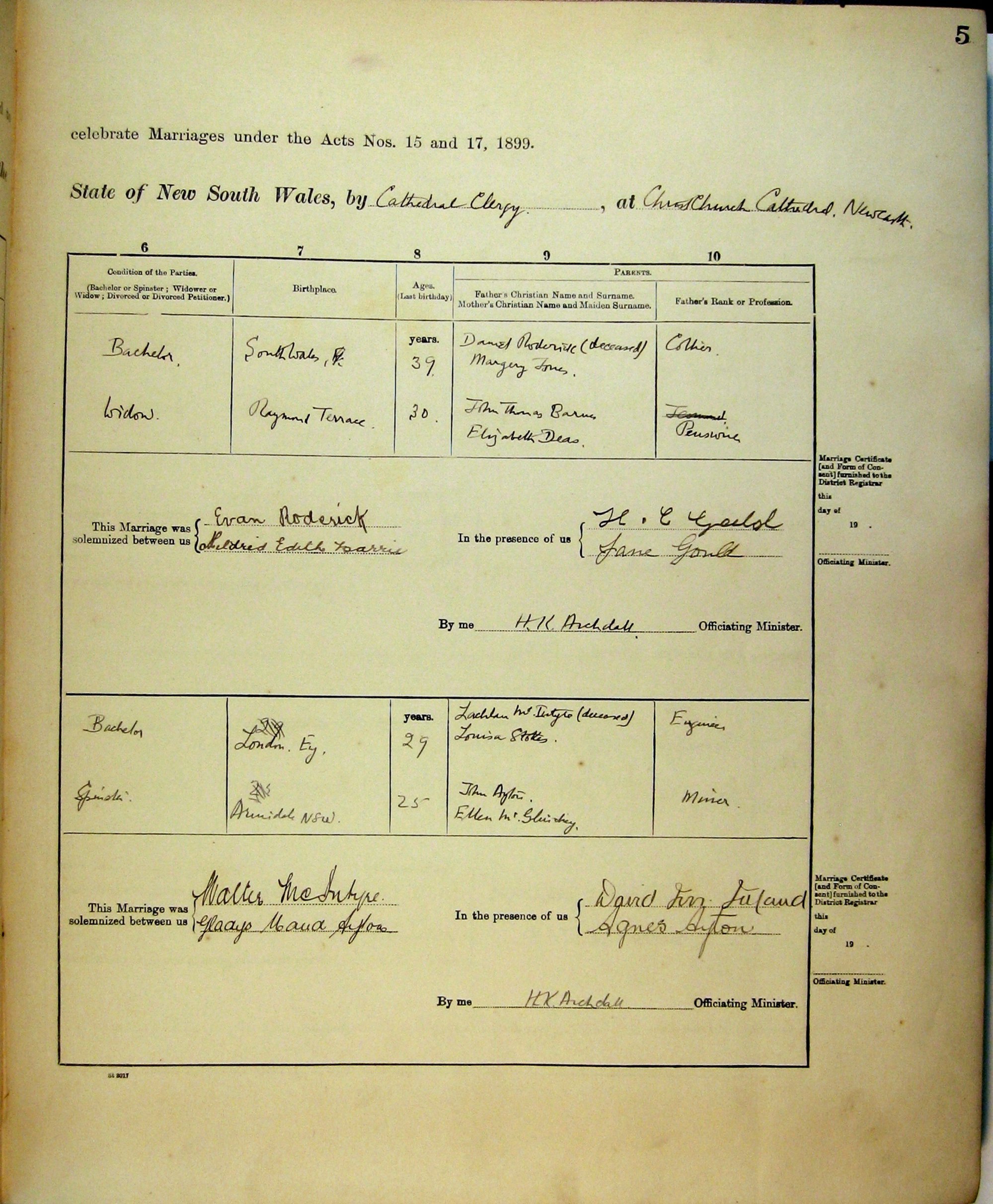 Marriages Numbers 9a and 10a, Page 5a. 1919
