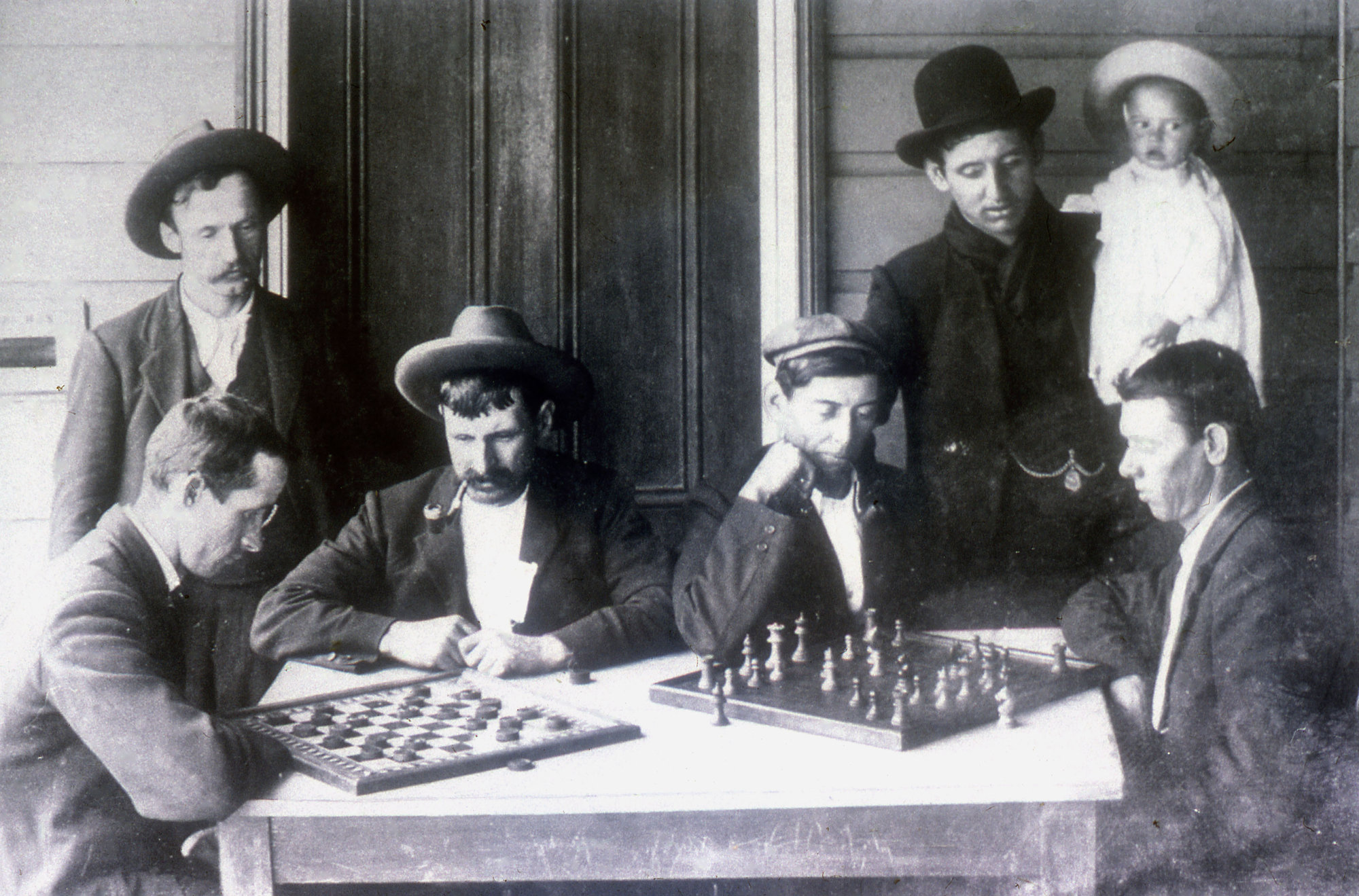 Men playing chess and checkers, Lambton Mechanics Institute, Lambton, NSW, 1930 ([1930]), [C918-0394]. Living Histories, accessed 16/01/2026, https://livinghistories.newcastle.edu.au/nodes/view/5082