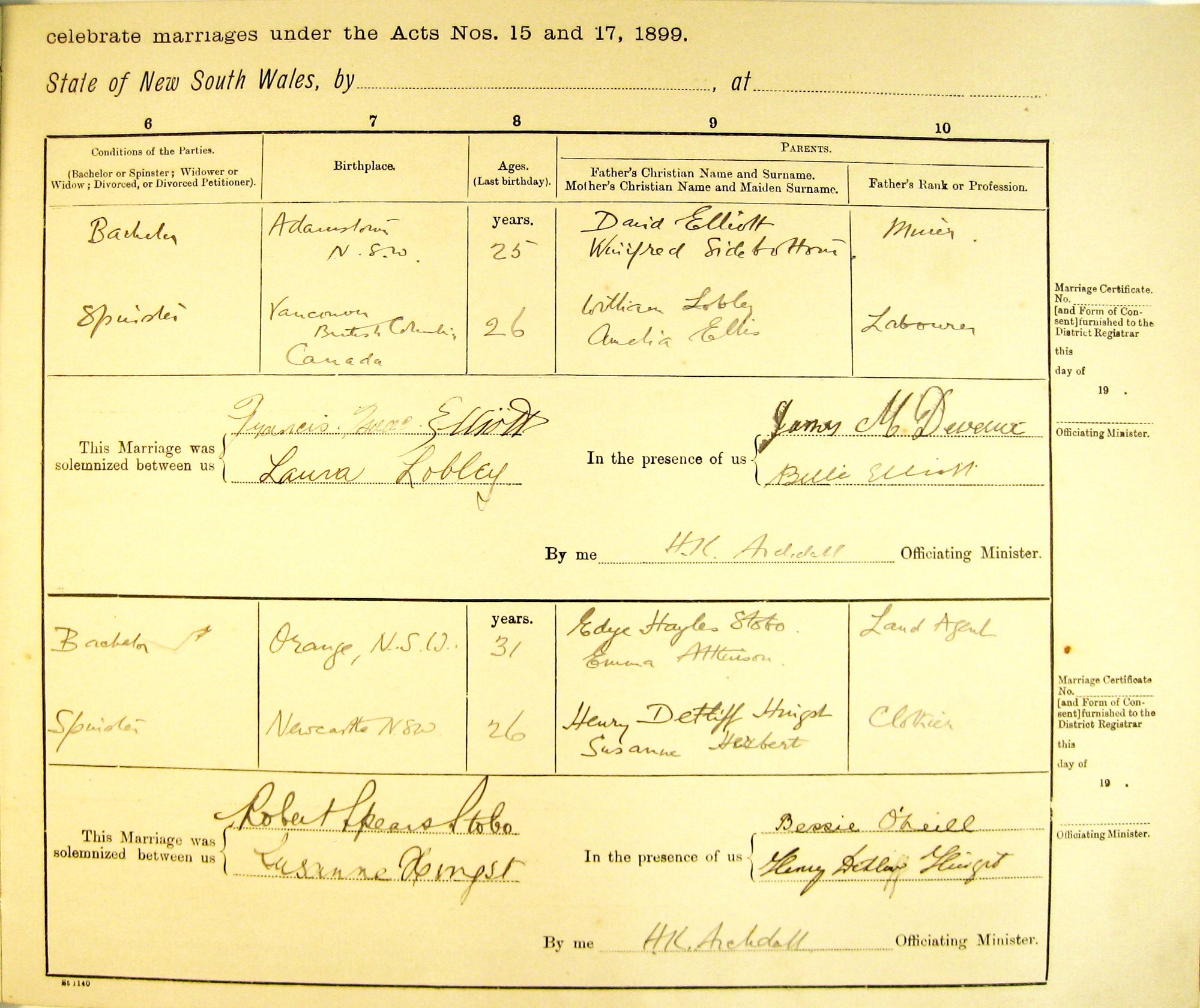 Marriage Numbers 19a to 20a. 1916, 1917