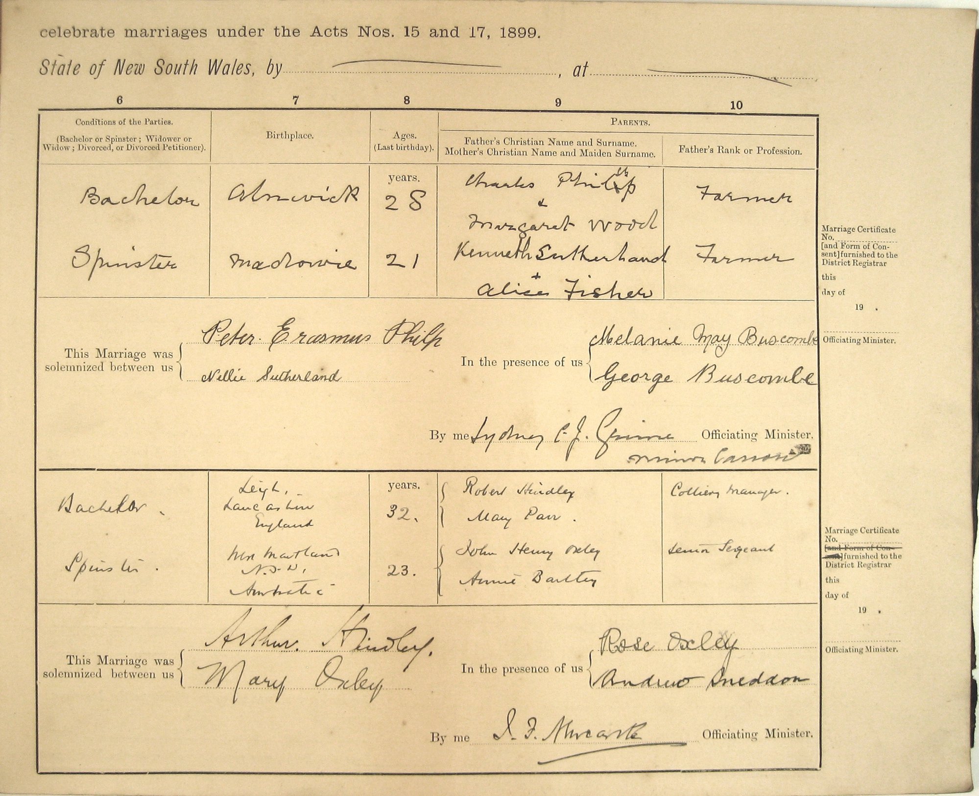 Marriage Numbers 1a to 2a. 1914