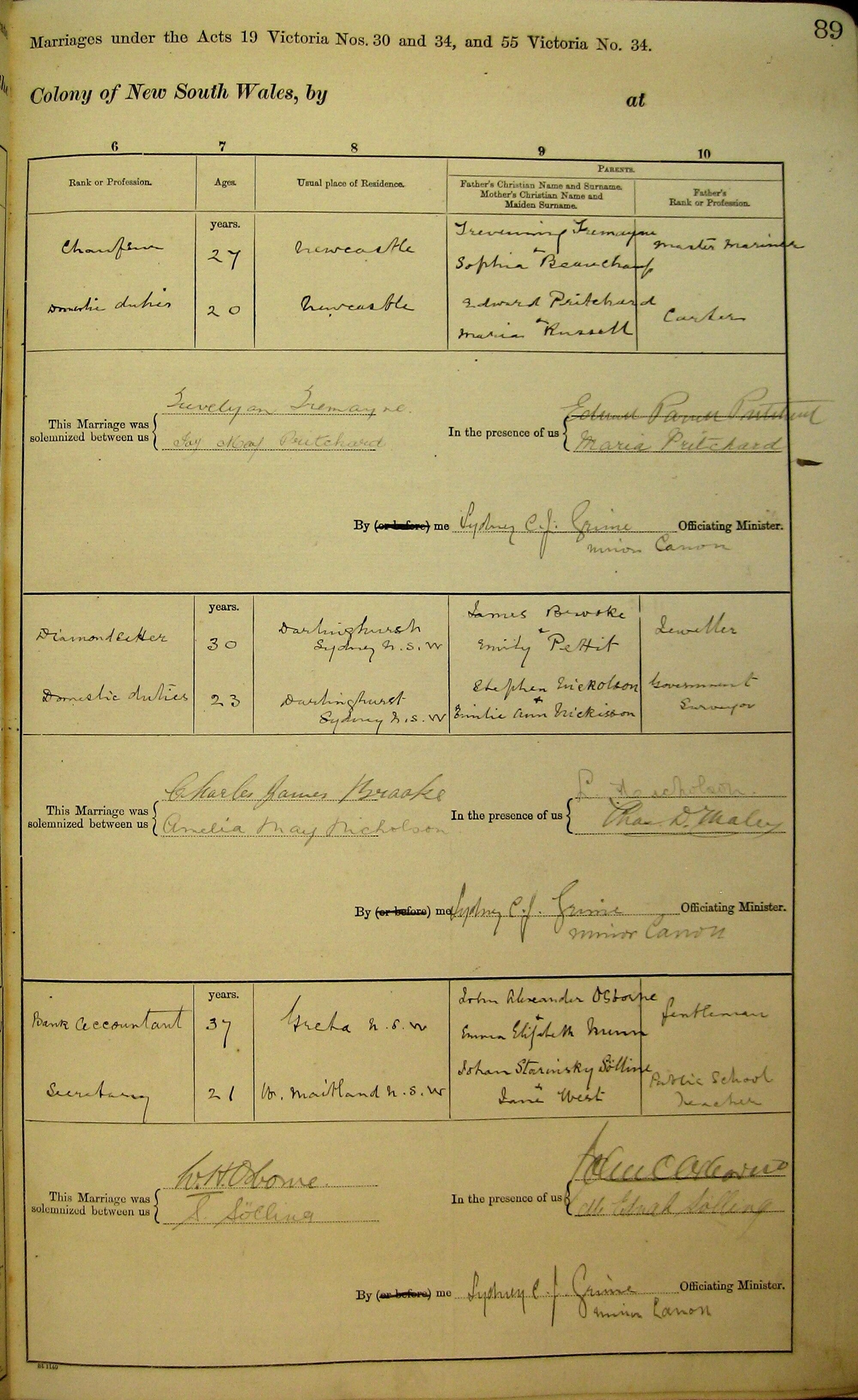 Marriage Numbers 265a to 267a, Page 89a. 1910. Living Histories, accessed 19/03/2026, https://livinghistories.newcastle.edu.au/nodes/view/51265