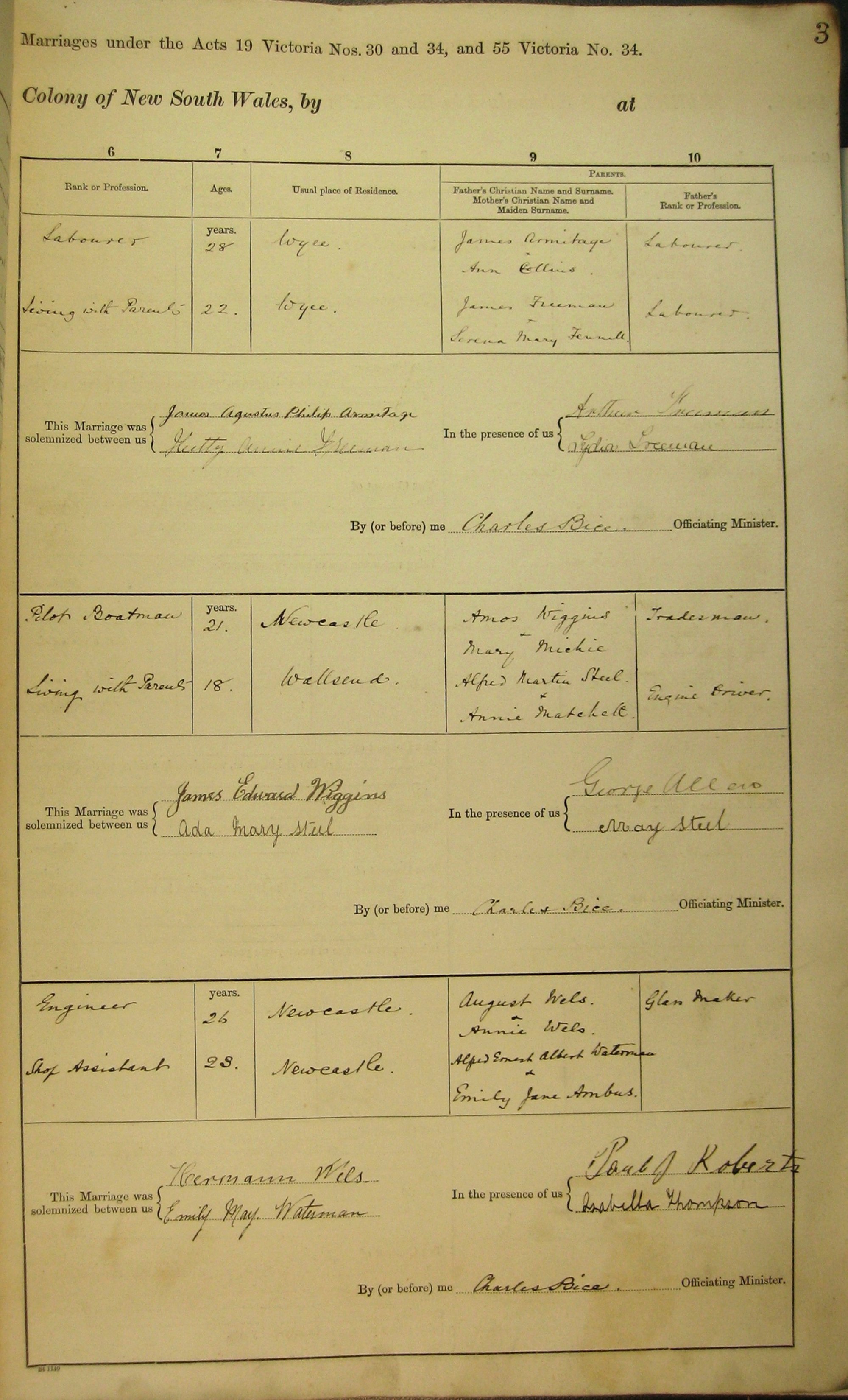 Marriage Numbers 7a to 9a, Page 3a. 1900
