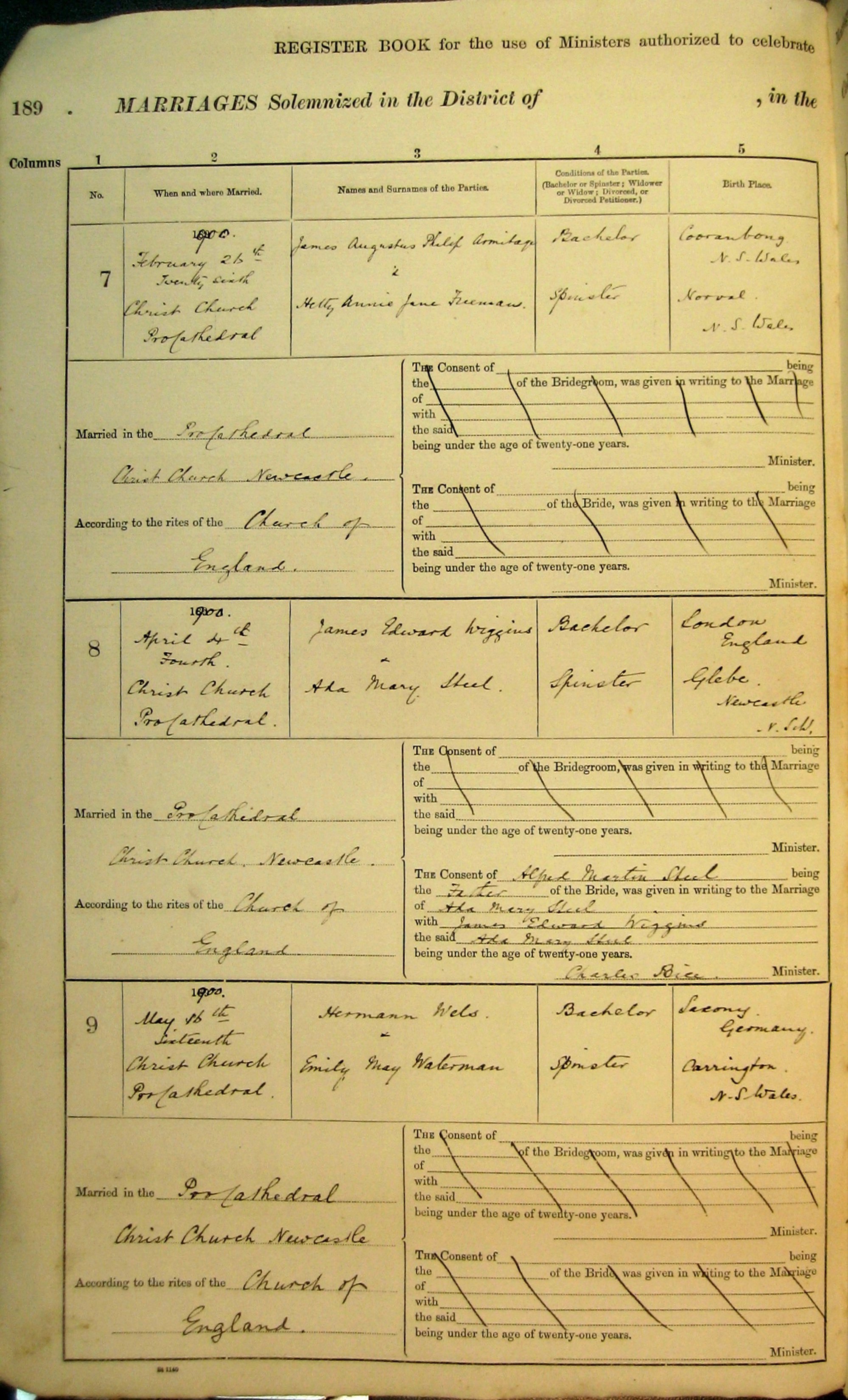 Marriage Numbers 7 to 9, Page 3. 1900