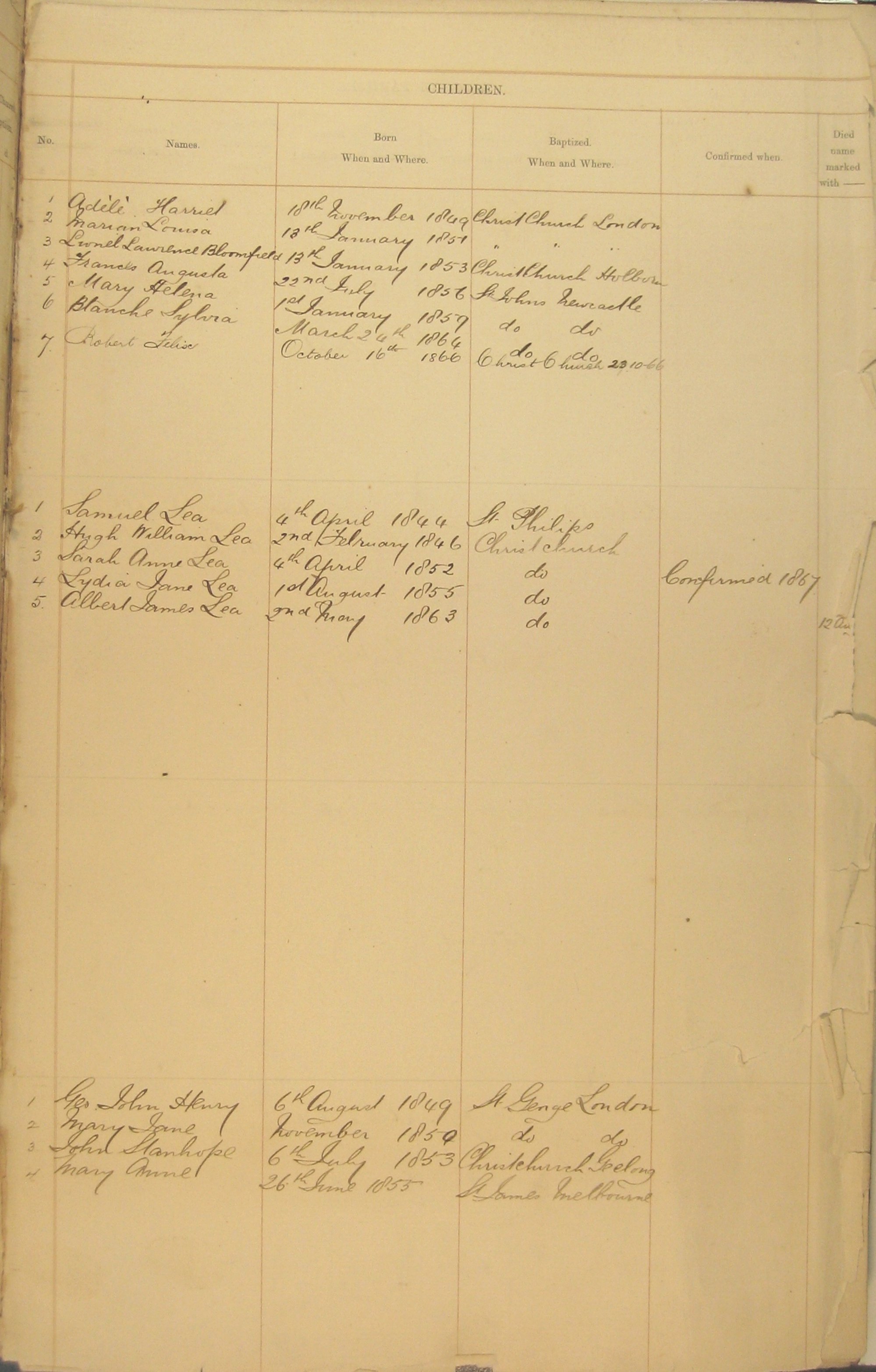 Family Record Numbers 37a to 40a