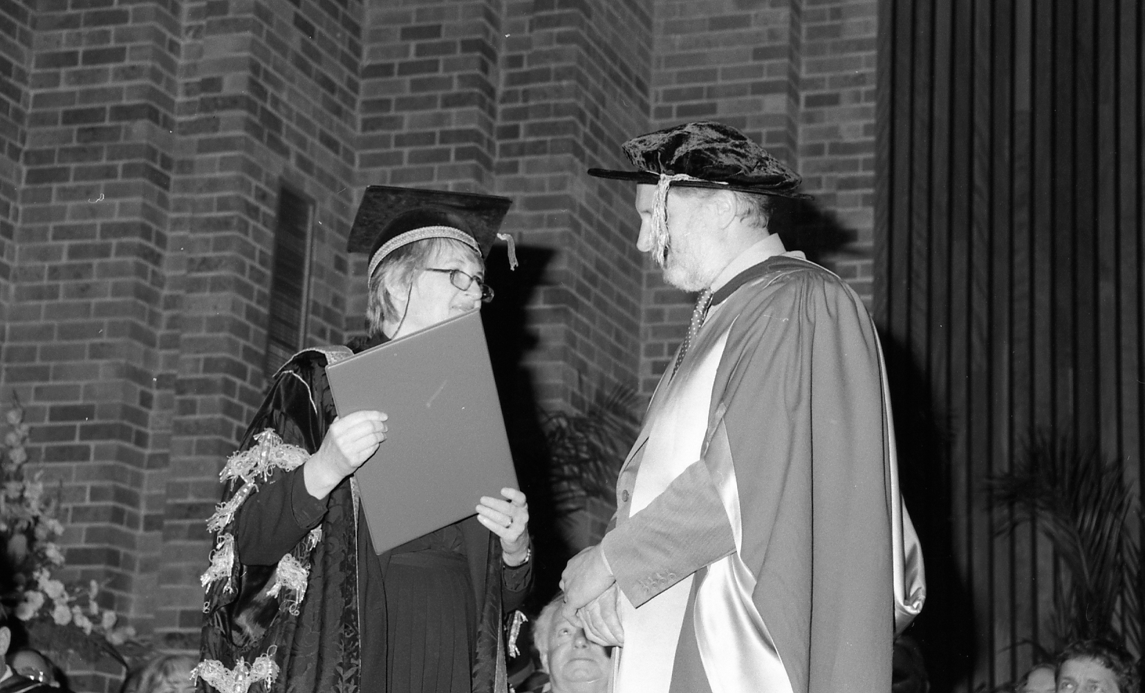 Graduation Ceremony - Chancellor Elizabeth Evatt introduces an unidentified speaker, the University of Newcastle, Australia - 7 May 1993 (7th May 1993), [B16372.93.079.3]. Living Histories, accessed 17/04/2026, https://livinghistories.newcastle.edu.au/nodes/view/5187