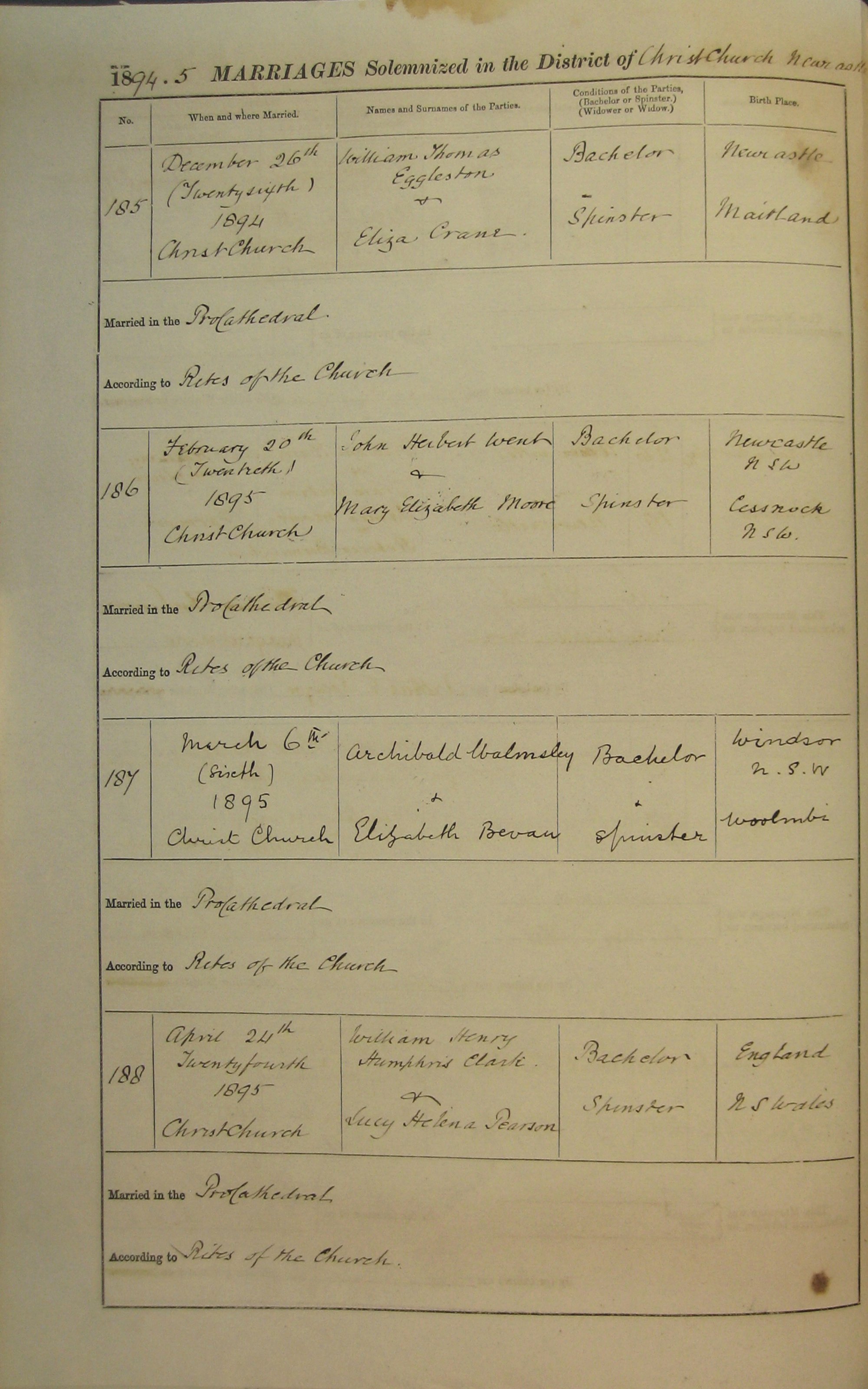 Marriage Numbers 185 to 188 1894 1895
