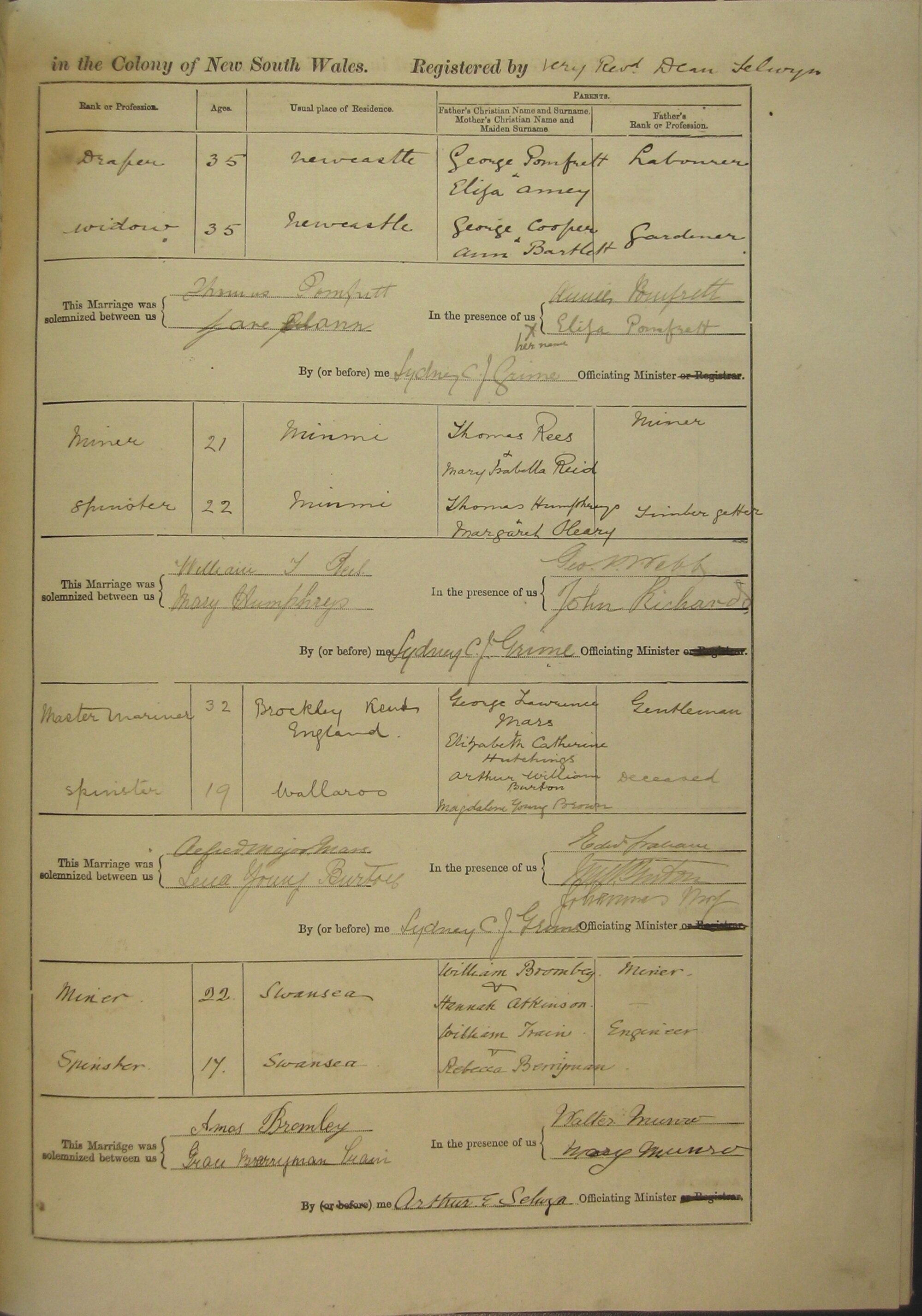 Marriage Numbers 169a to 172a 1894