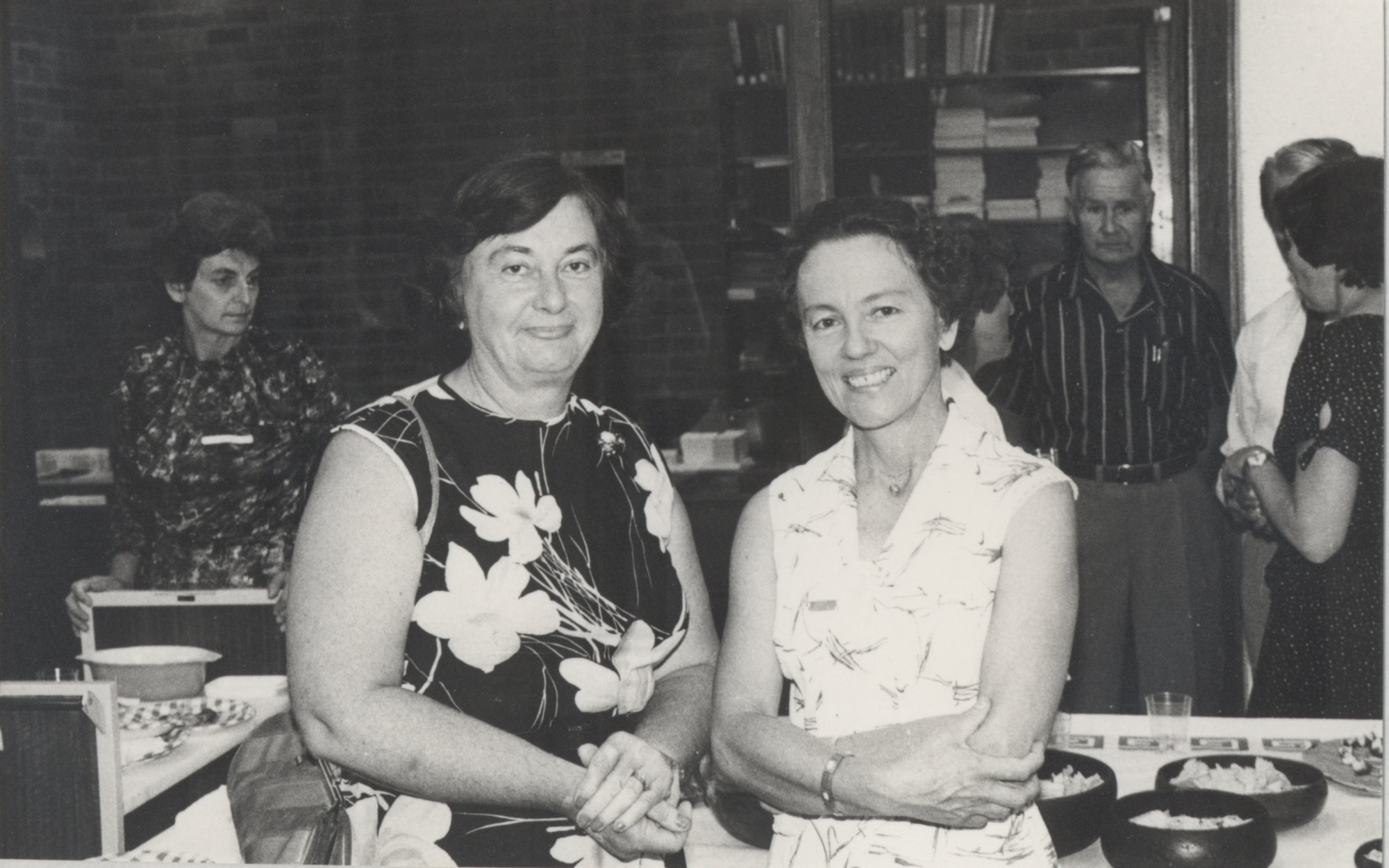 Patricia Flowers (left) at the 20th anniversary celebrations of the appointment of Mr. Ted Flowers as Librarian, University of Newcastle, May, 1981