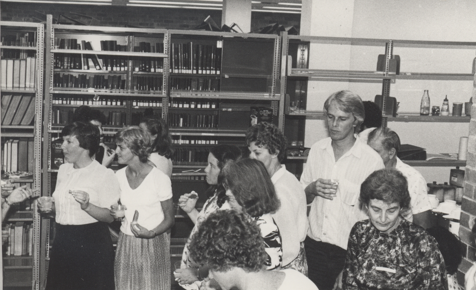 Photograph taken at the 20th anniversary celebrations of the appointment of Mr. E. Flowers as Librarian, University of Newcastle, May, 1981 (1981), [P397v]. Living Histories, accessed 04/04/2026, https://livinghistories.newcastle.edu.au/nodes/view/52749