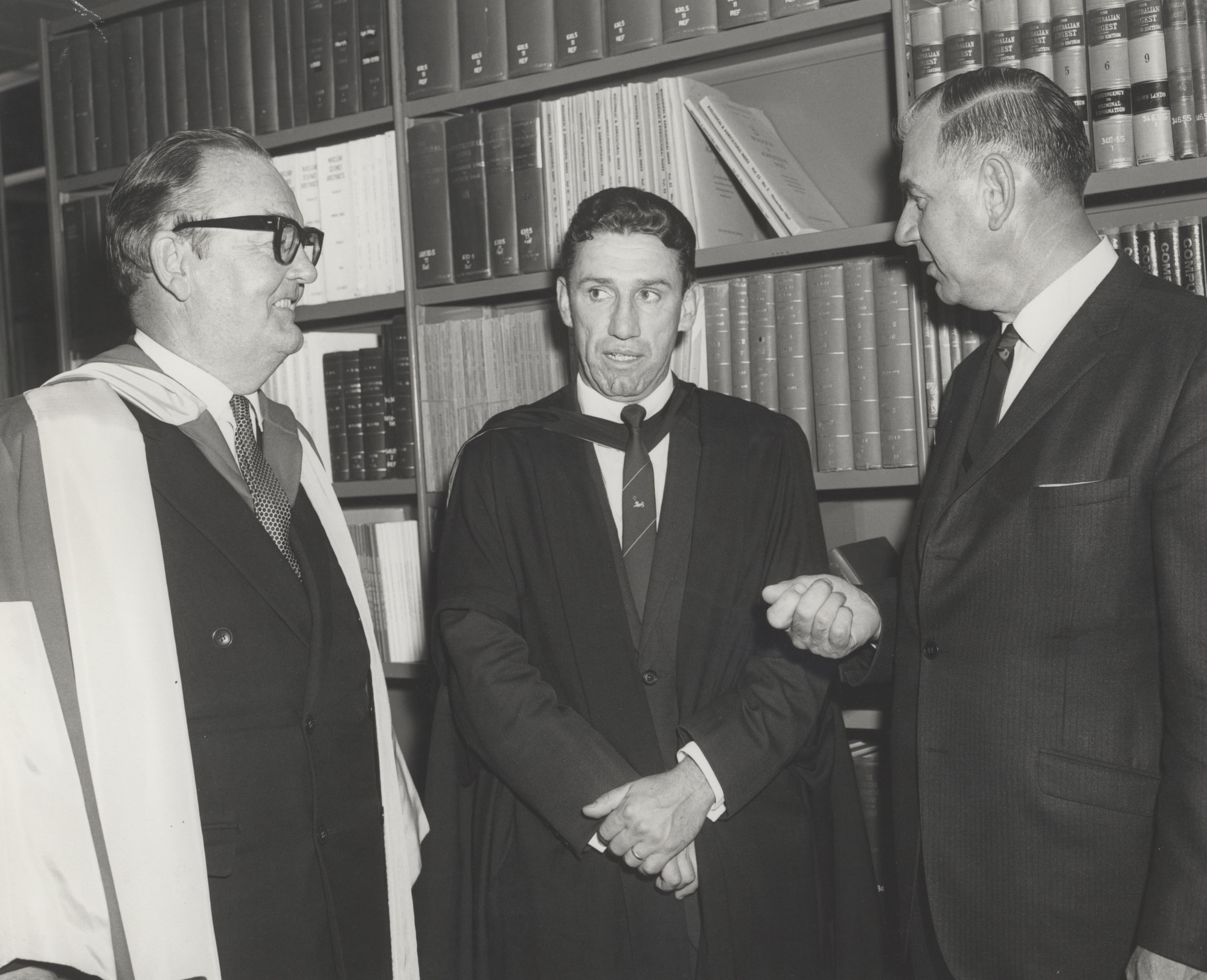 Professor J.J. Auchmuty, Mr. E. Flowers, and Hon. C.B. Cutler at opening of the Auchmuty Library, Stage 1: the University of Newcastle, Australia - 7 February 1968