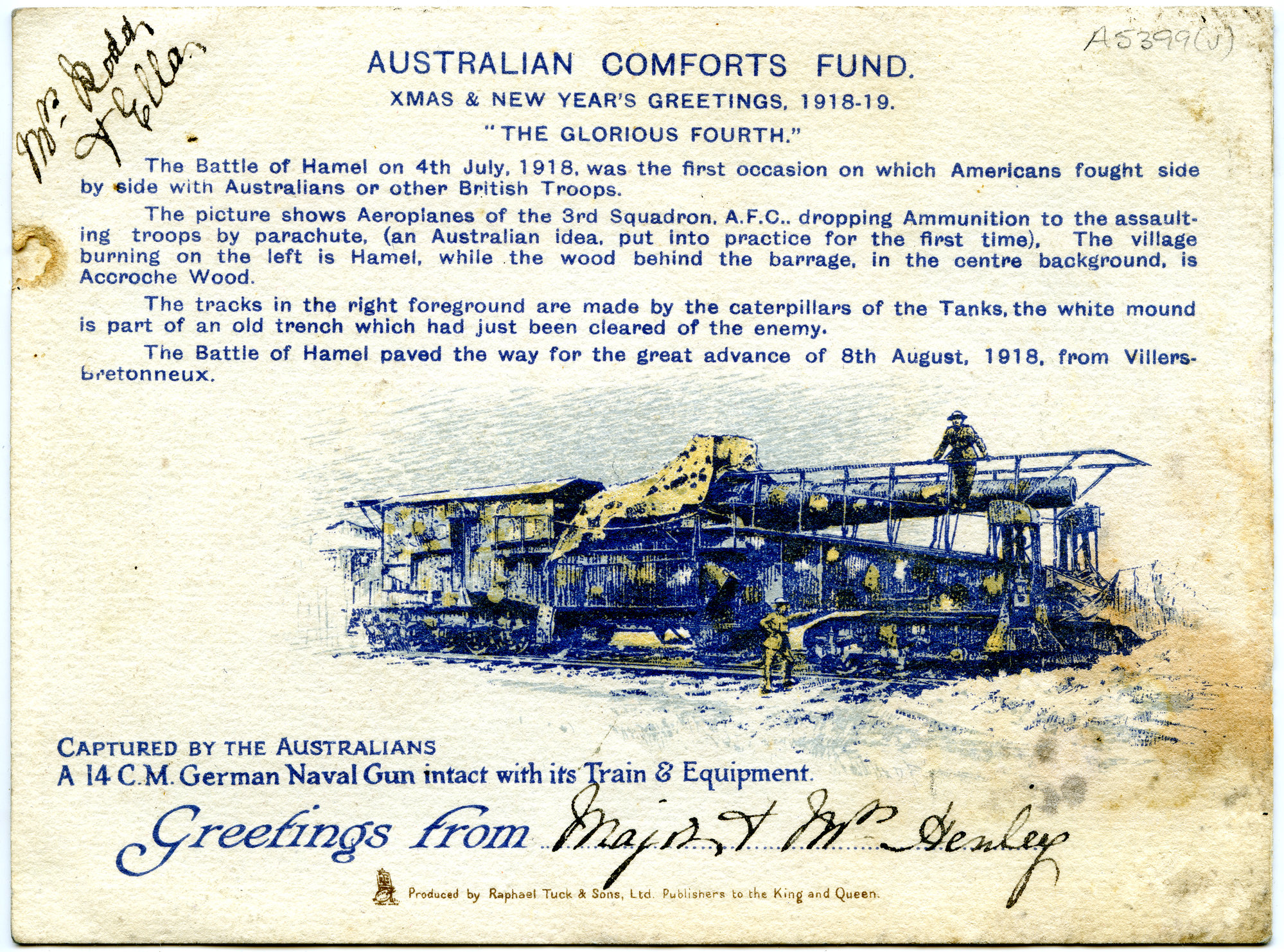 Capture of Hamel village, "Australian Comfort Fund", 4 July 1918, Page 4, World War I (4th July 1918), [A5399(v)006d]. Living Histories, accessed 25/03/2026, https://livinghistories.newcastle.edu.au/nodes/view/53402