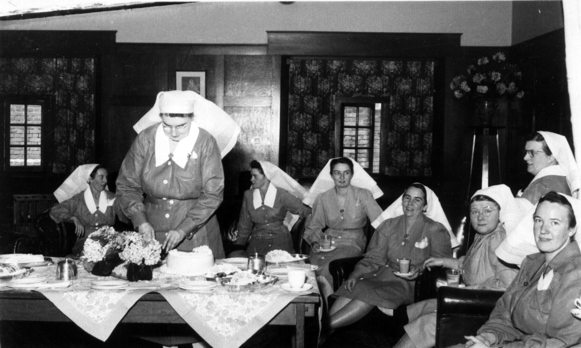 Agnes Porter, Matron, with a group of nursing sisters in recreation room of the Nurses Home, Royal Newcastle Hospital, NSW, [A8850_xiii_aa]. Living Histories, accessed 14/04/2026, https://livinghistories.newcastle.edu.au/nodes/view/54206