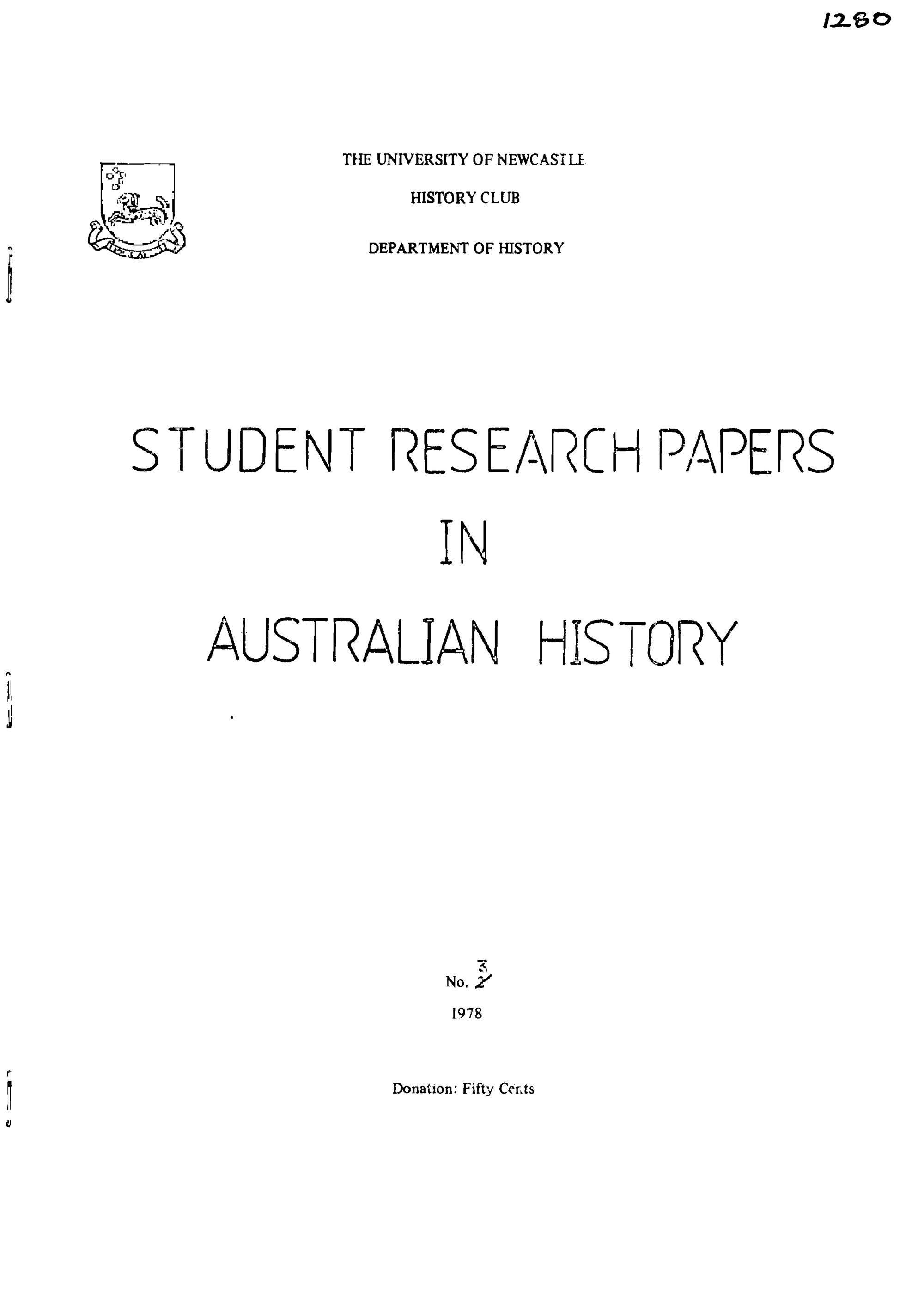 The University of Newcastle History Club, Department of History, Student Research Papers in Australian History, No. 3, 1978. Living Histories, accessed 24/03/2026, https://livinghistories.newcastle.edu.au/nodes/view/56334